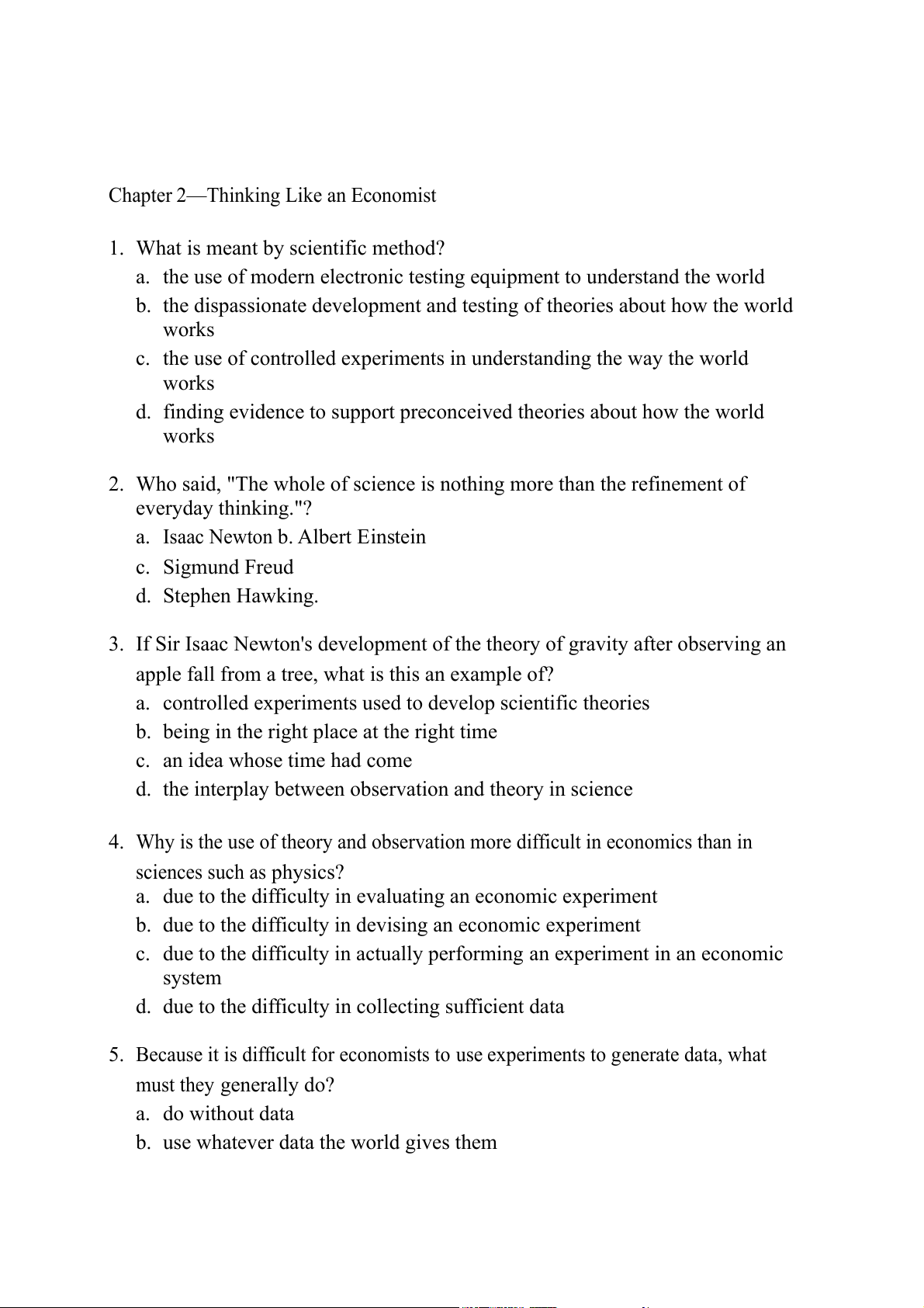 5. Because it is difficult for economists to use experiments to generate data, what must they generally do? a. do without data
