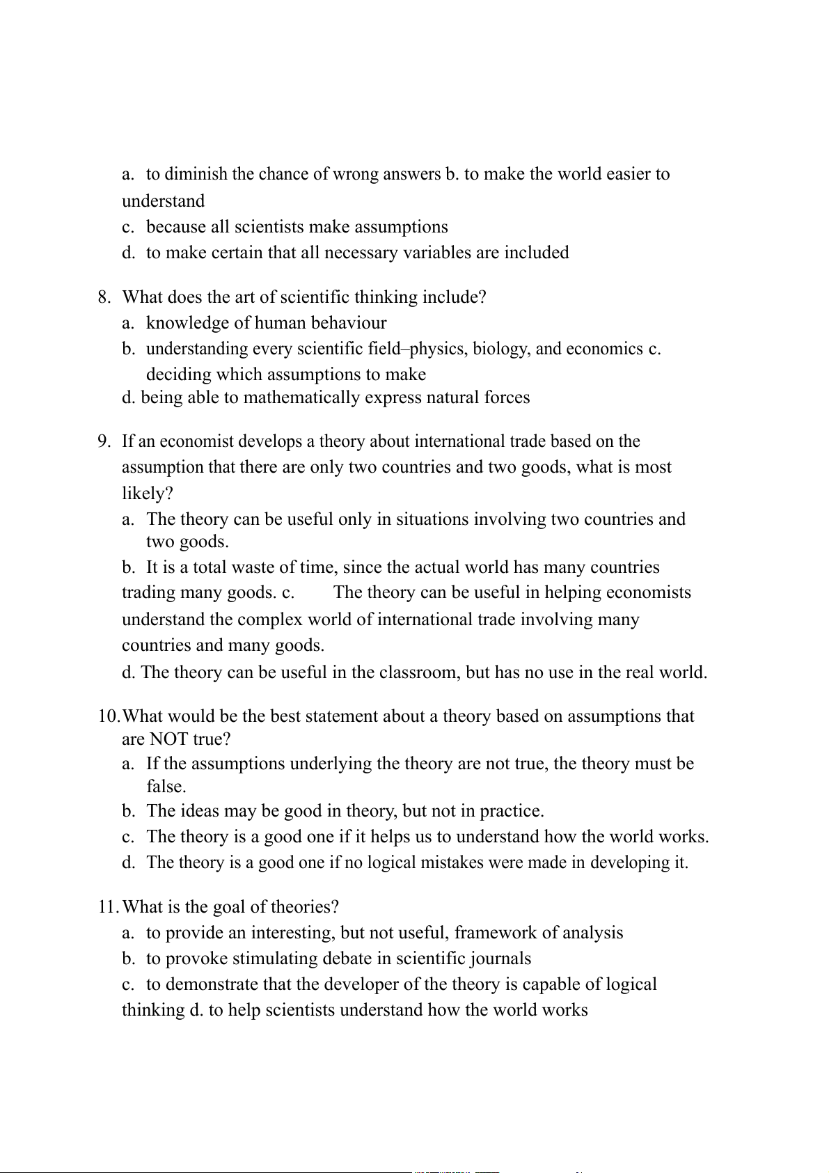 10.What would be the best statement about a theory based on assumptions that are NOT true?