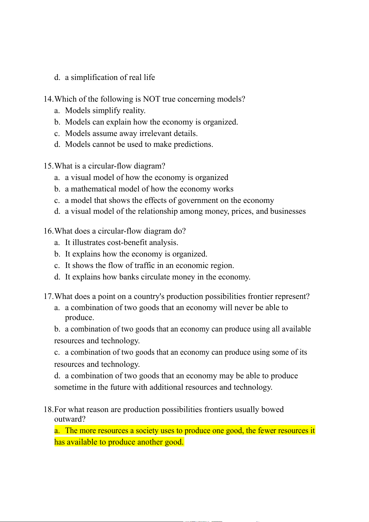 14.Which of the following is NOT true concerning models? a. Models simplify reality.