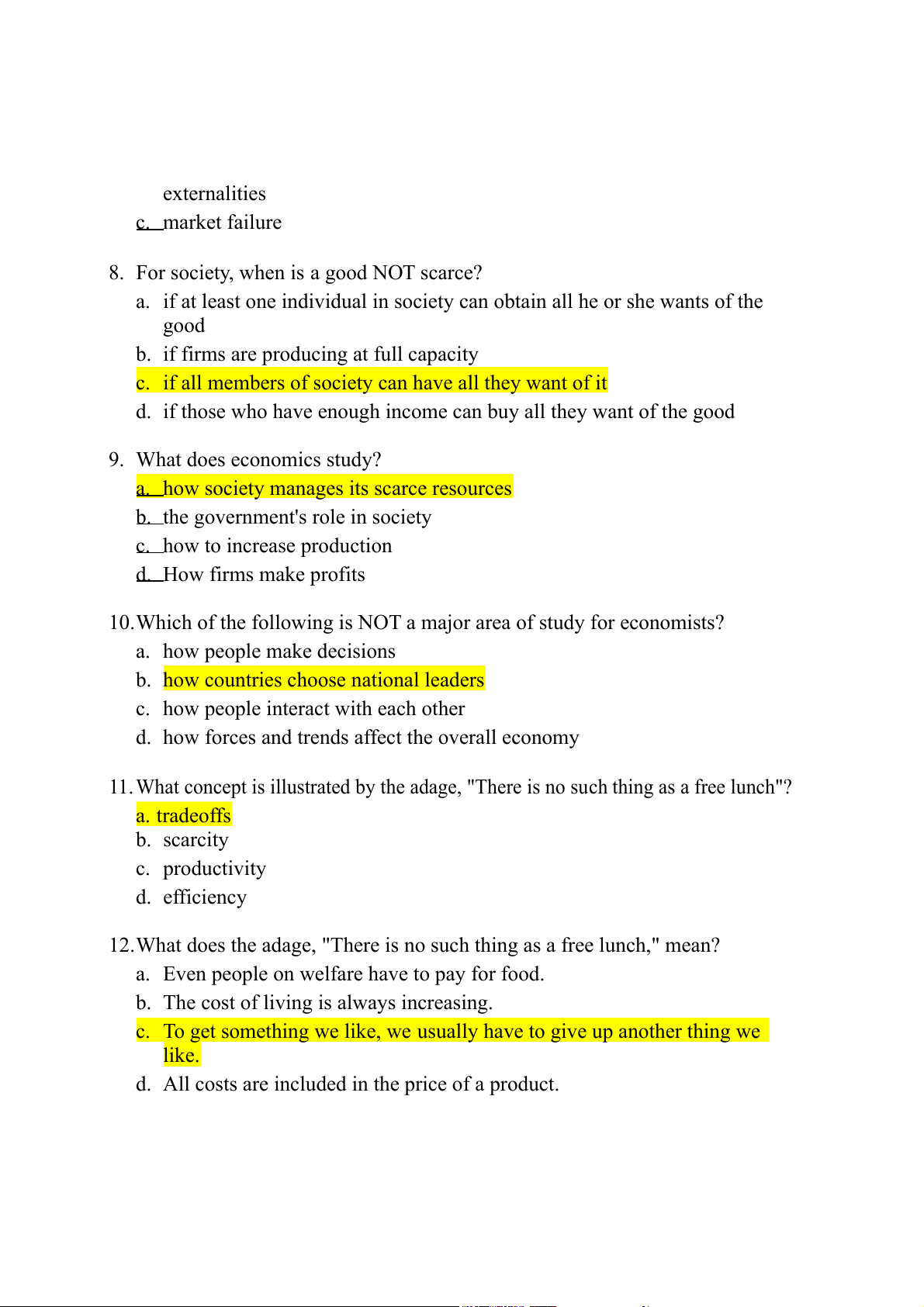 d. if those who have enough income can buy all they want of the good 9. What does economics study?