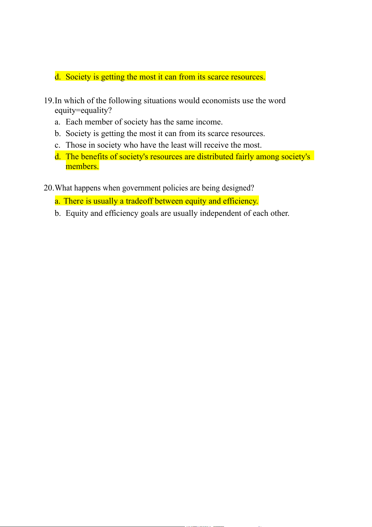 d. The benefits of society's resources are distributed fairly among society's members.