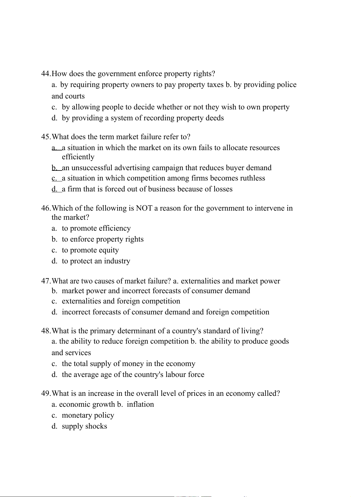 47.What are two causes of market failure? a. externalities and market power