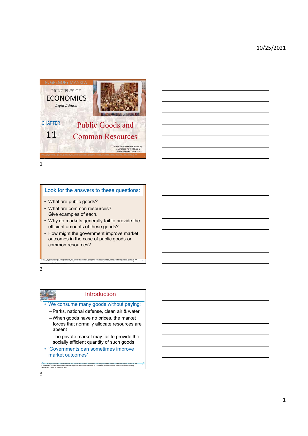 10/25/2021 N. GREGORY MANKIW PRINCIPLES OF ECONOMICS Eight Edition CHAPTER Public Goods and Common Resources Premium PowerPoint Slides by: V. Andreea CHIRITESCU Eastern Illinois University