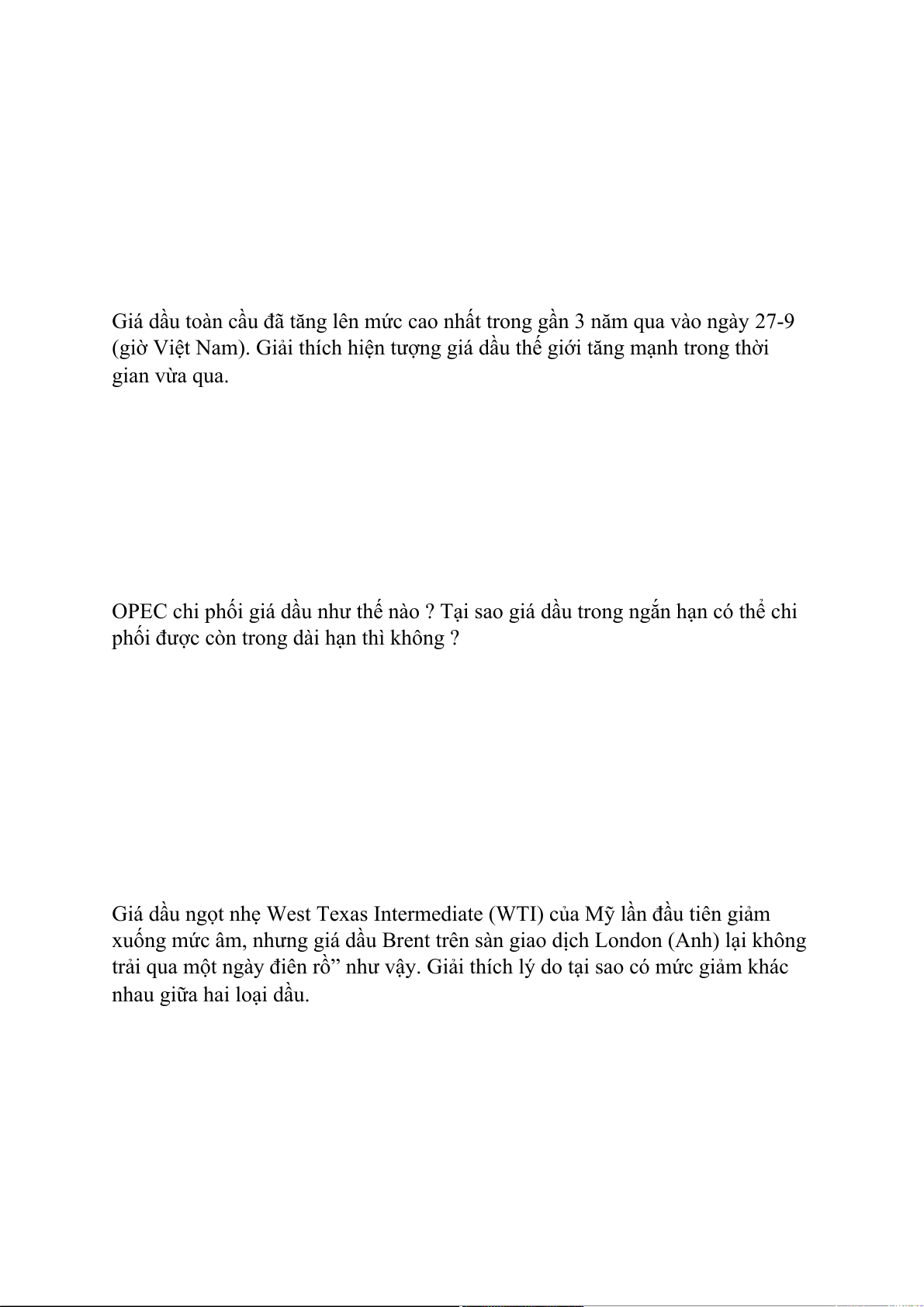 (giờ Việt Nam). Giải thích hiện tượng giá dầu thế giới tăng mạnh trong thời gian vừa qua.