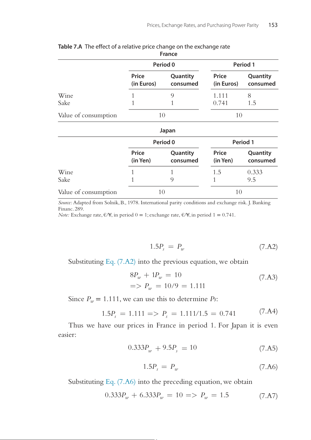 Note: Exchange rate, €/¥, in period 0 = 1; exchange rate, €/¥, in period 1 = 0.741. 1.5P = P s w (7.A2)