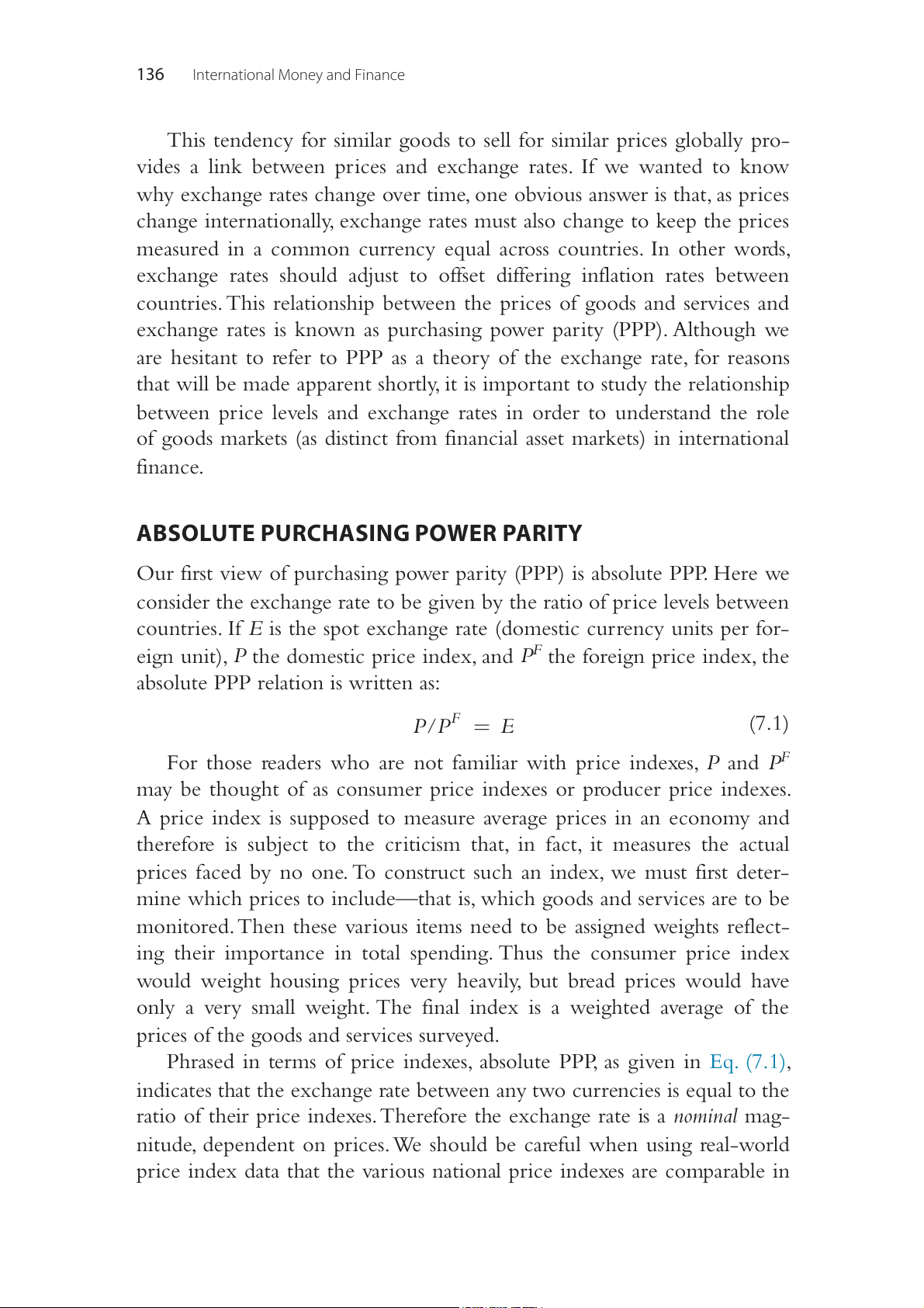 Phrased in terms of price indexes, absolute PPP, as given in Eq. (7.1),