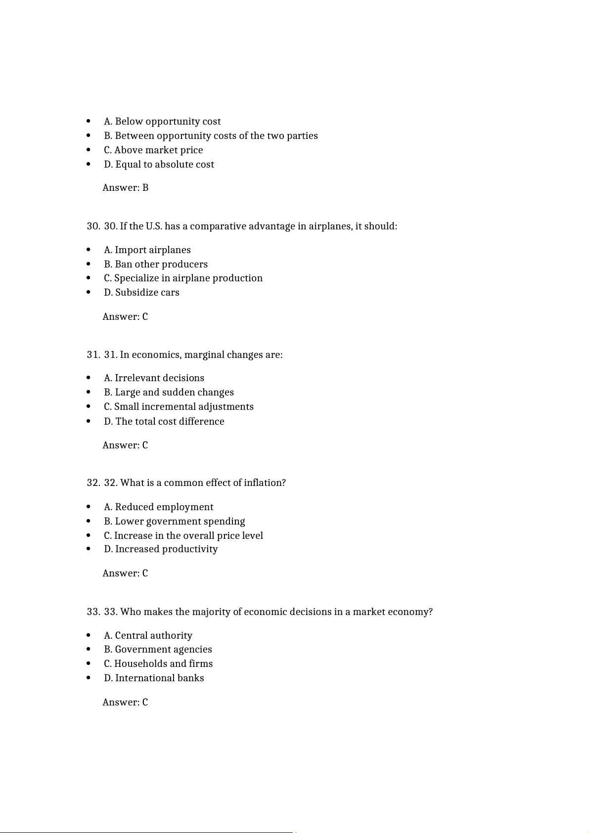 33. 33. Who makes the majority of economic decisions in a market economy? A. Central authority B. Government agencies C. Households and firms D. International banks ✅ Answer: C 34. 34. An incentive is: A. A moral obligation