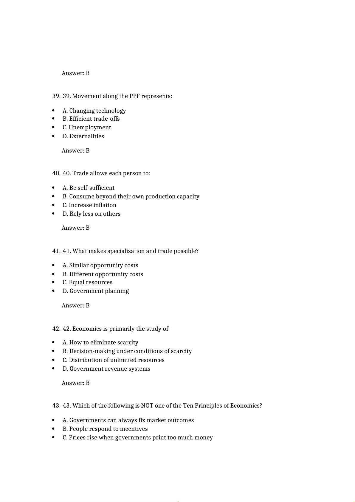 39. 39. Movement along the PPF represents: A. Changing technology B. Efficient trade-offs C. Unemployment D. Externalities ✅ Answer: B