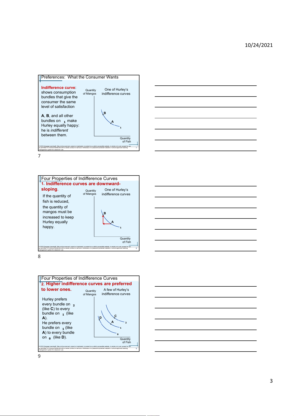 1. Indifference curves are downward- sloping. Quantity One of Hurley’s of Mangos If the quantity of indifference curves fish is reduced, the quantity of mangos must be B increased to keep Hurley equally A happy. I1 Quantity of Fish