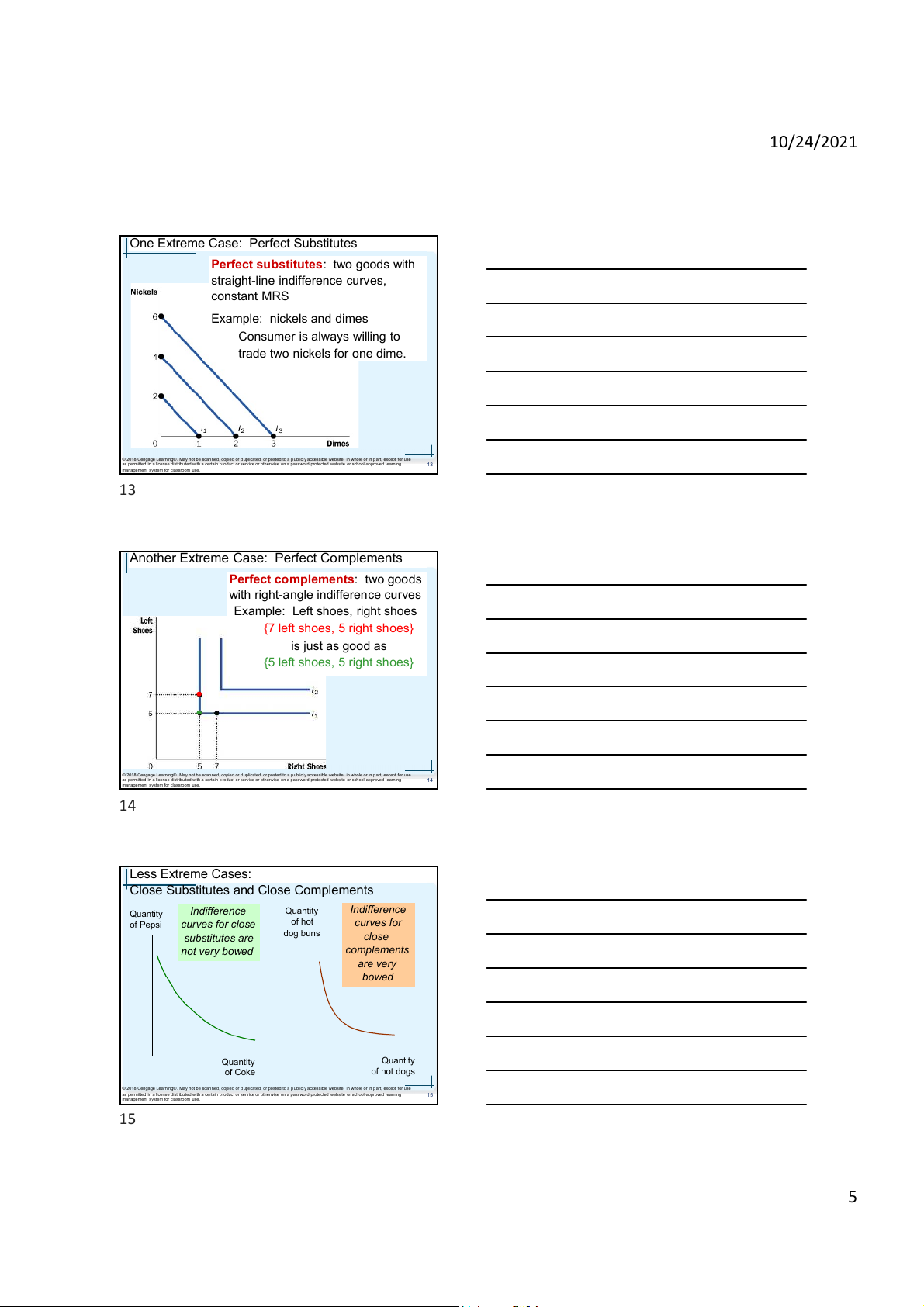 straight-line indifference curves, constant MRS Example: nickels and dimes Consumer is always wil ing to