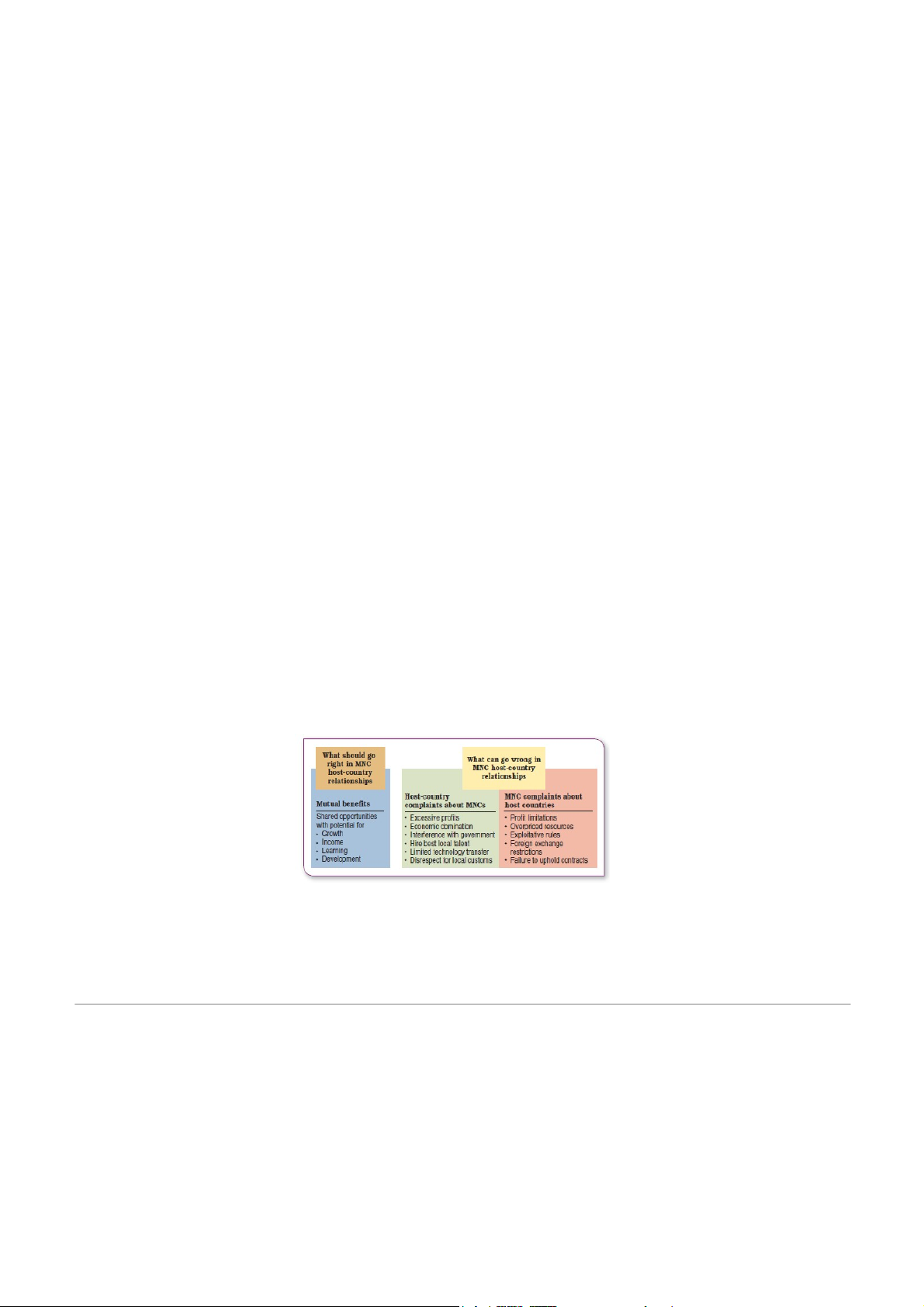 MNC complaints about host countries - Profit limitations - Overpriced resources - Exploitative rules - Foreign exchange restrictions - Failure to uphold contracts Ethical challenges for Global Businesses: Corruption Sweatshops Child labor