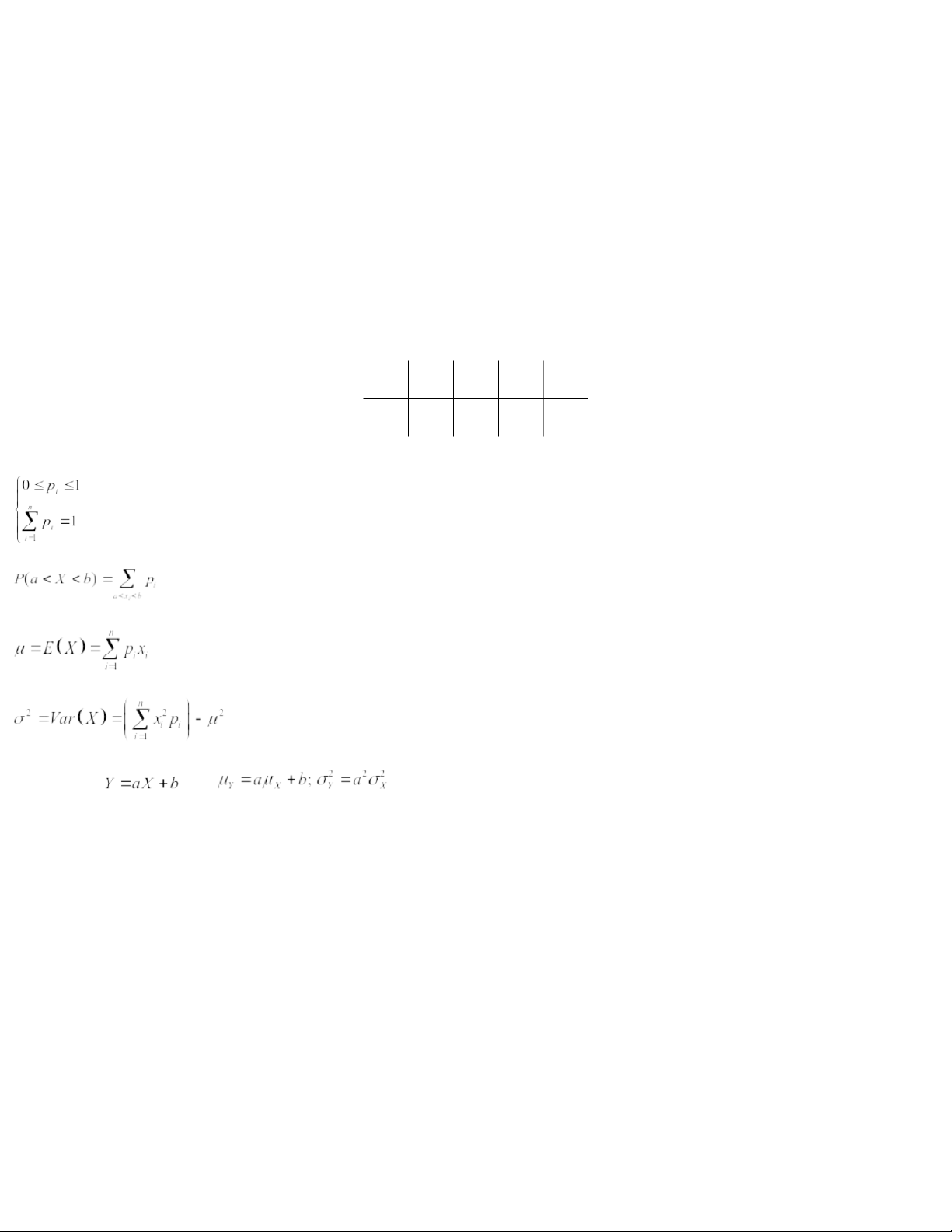 CHAPTER 2. DISCRETE RANDOM VARIABLES I. Distribution table Given the distribution table: Xx1x2….xn Pp1p2….pn Then 1. . 2. . 3. . 4. . n particular, if then . 20:59, 27/01/2026