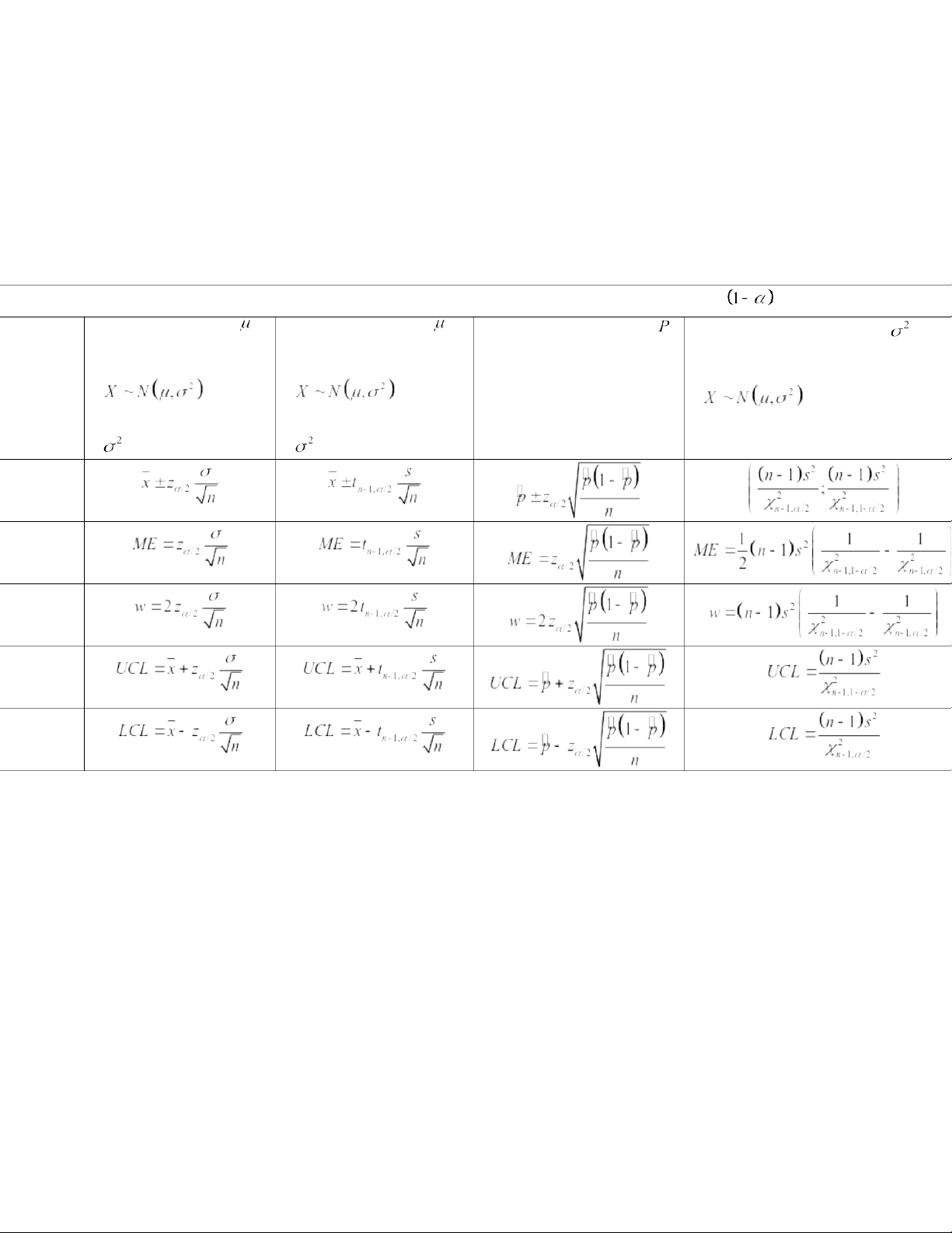 CHAPTER 5. CONFIDENCE INTERVAL ESTIMATION I. Formulas