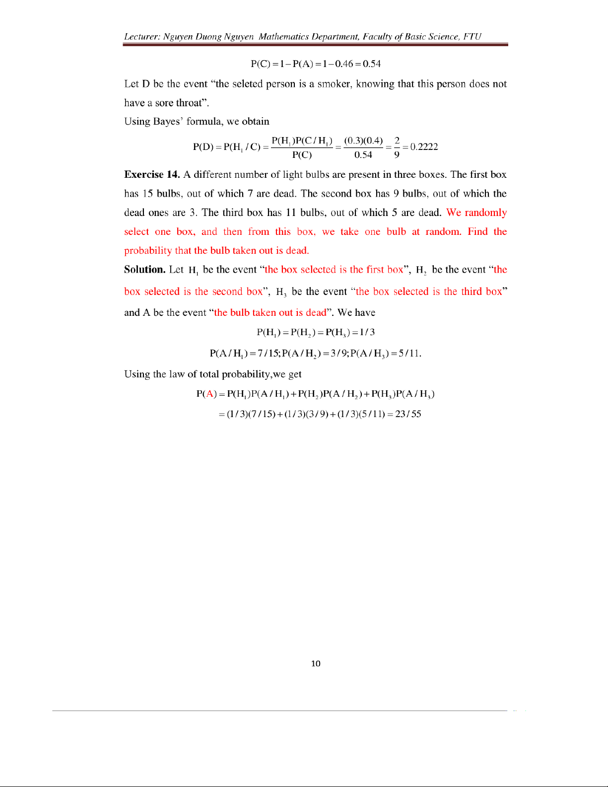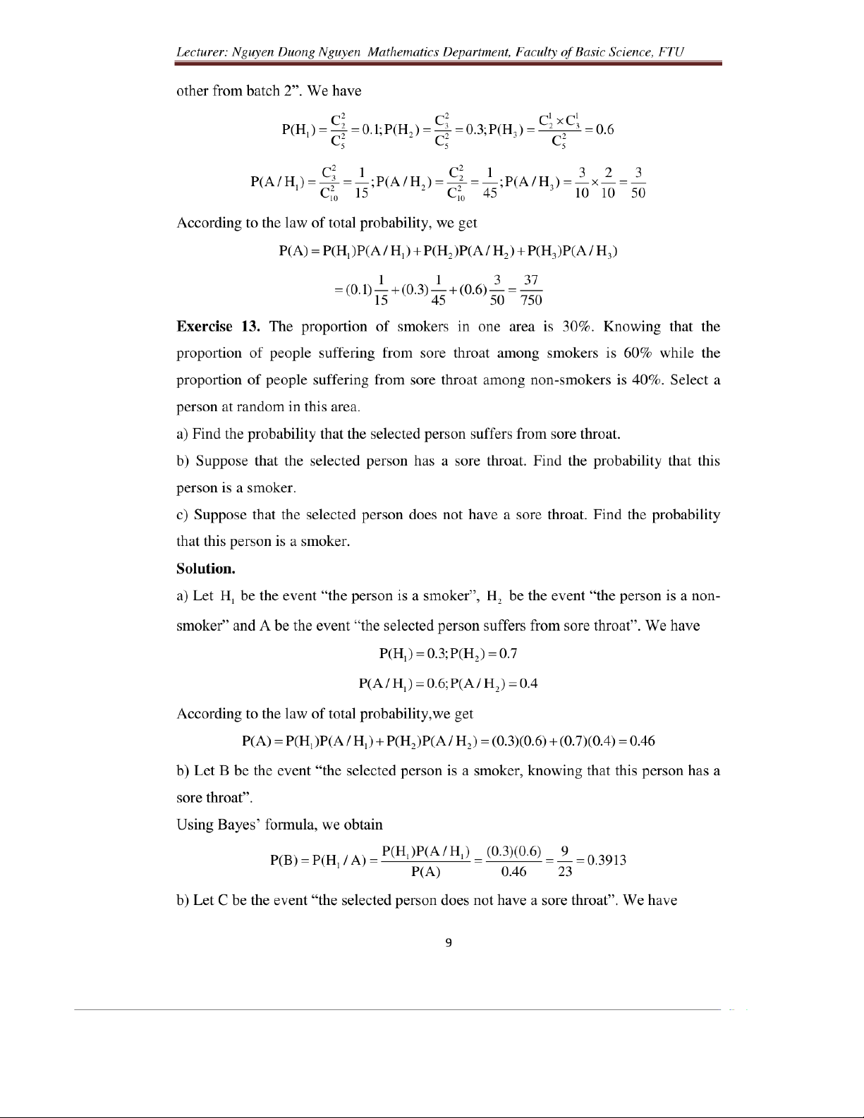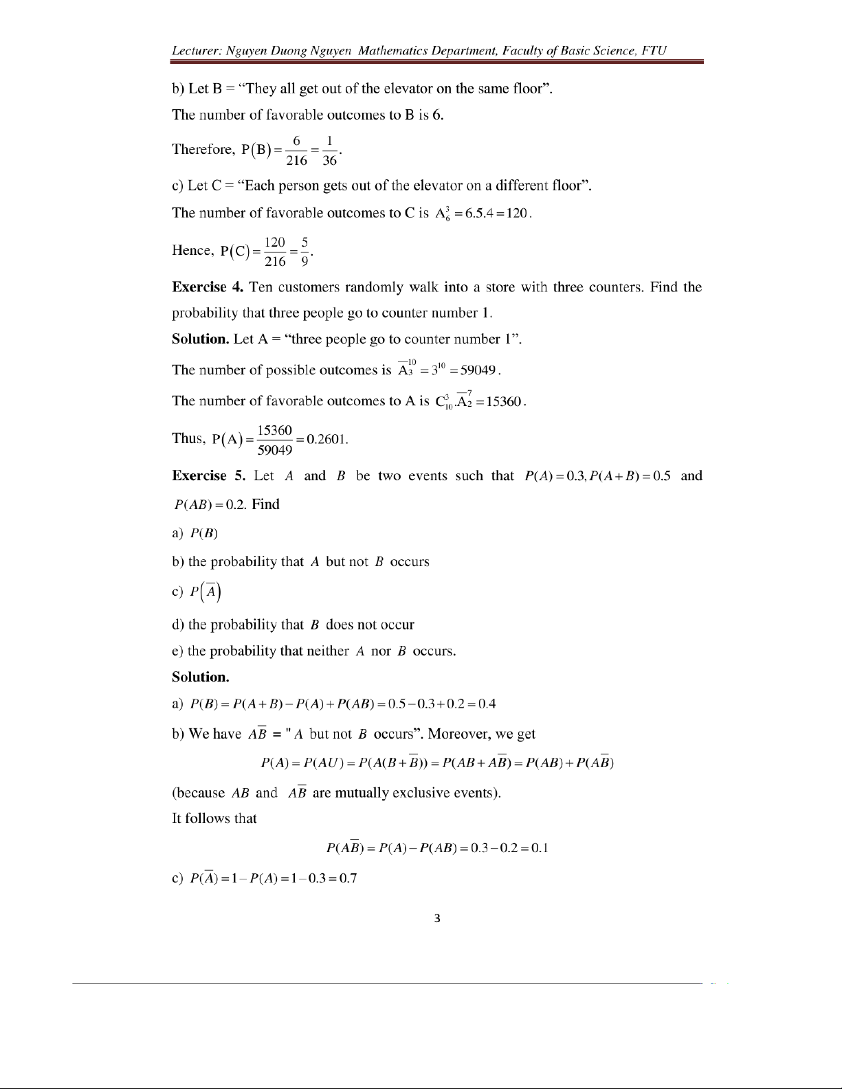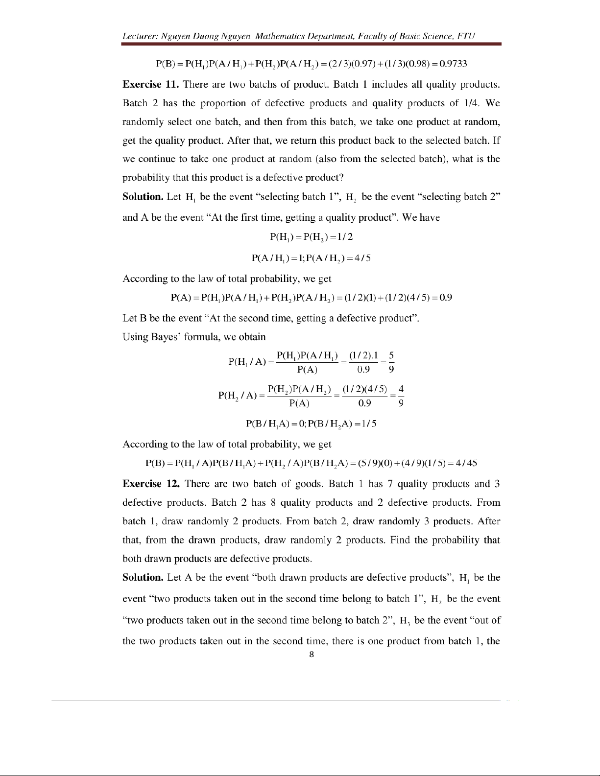 Probability solutions for exercises in chapter 1 môn Xác suất thống kê| Trường Đại học Ngoại Thương