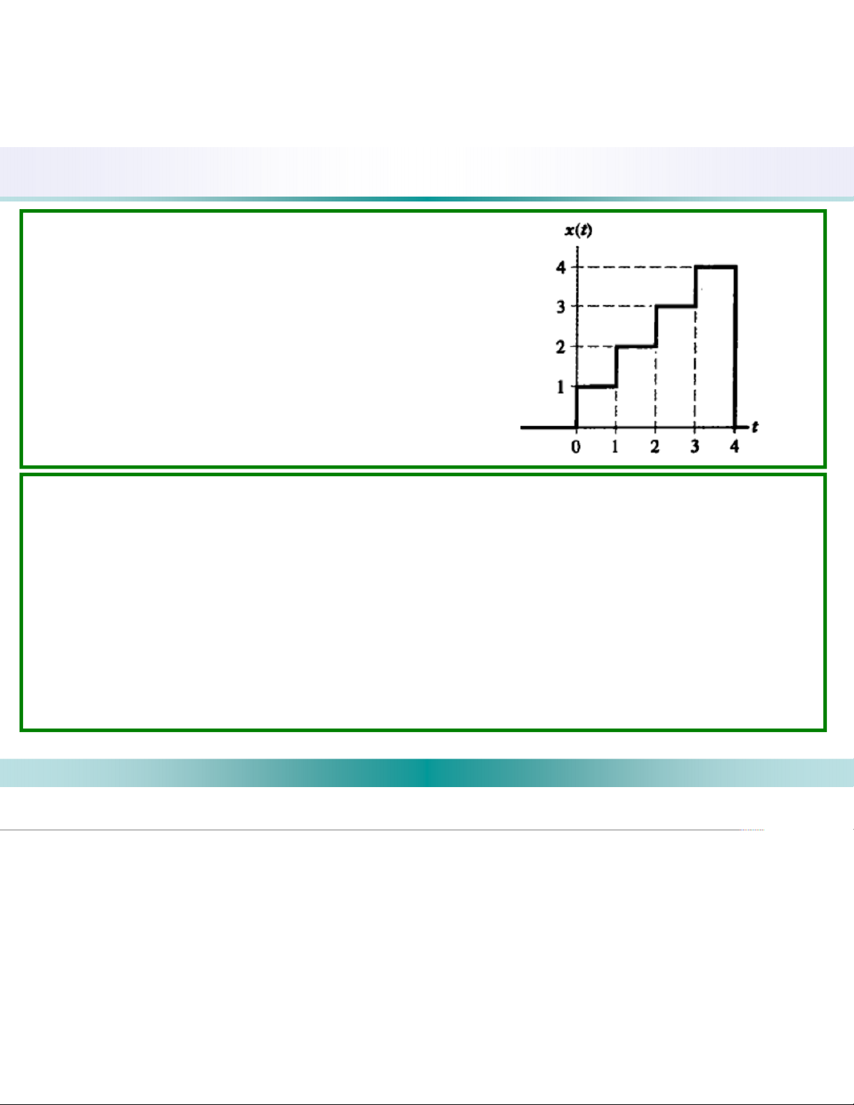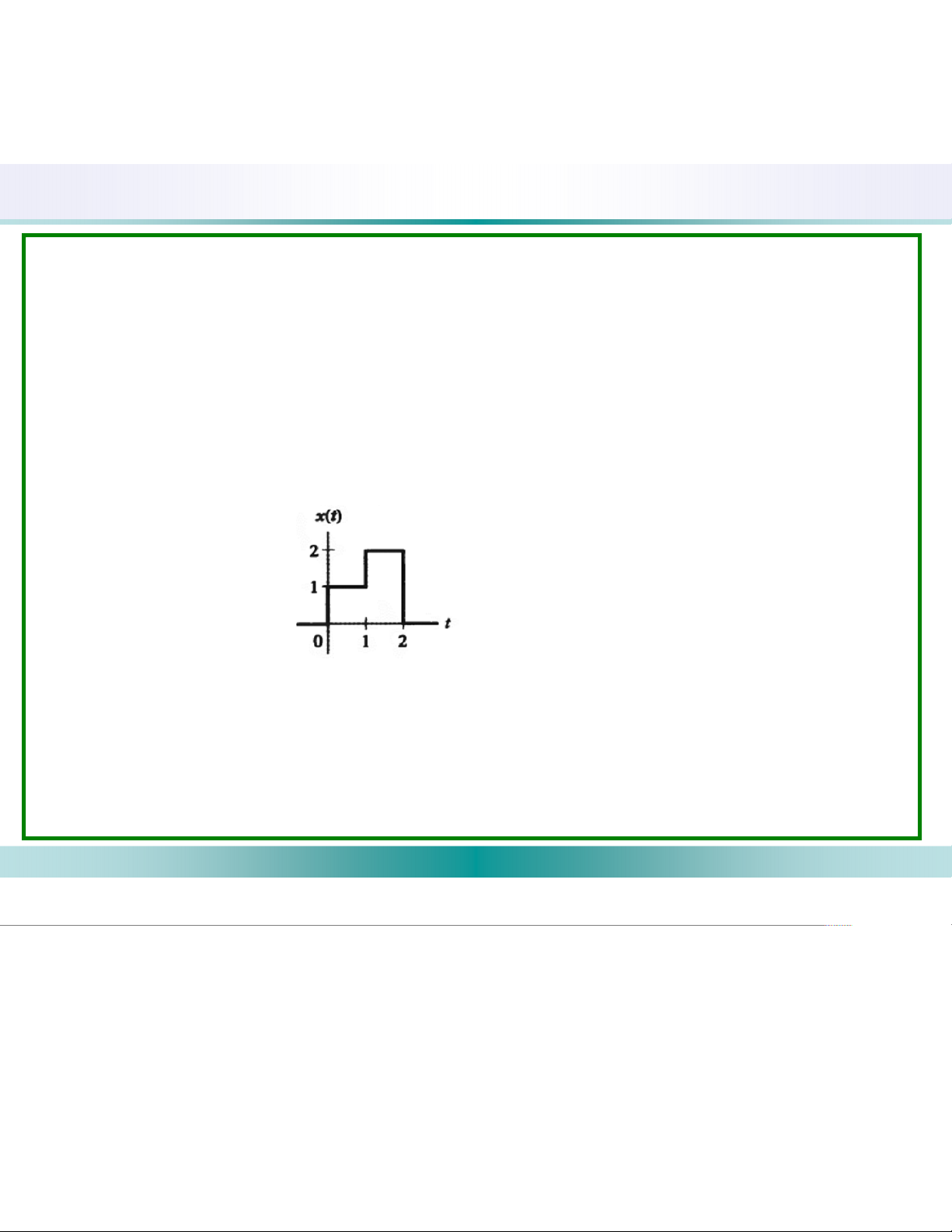 c. Hãy xác định và vẽ ngõ ra y(t) khi ngõ vào là x(t) như hình 1.7(b) Hình 1.7(b)