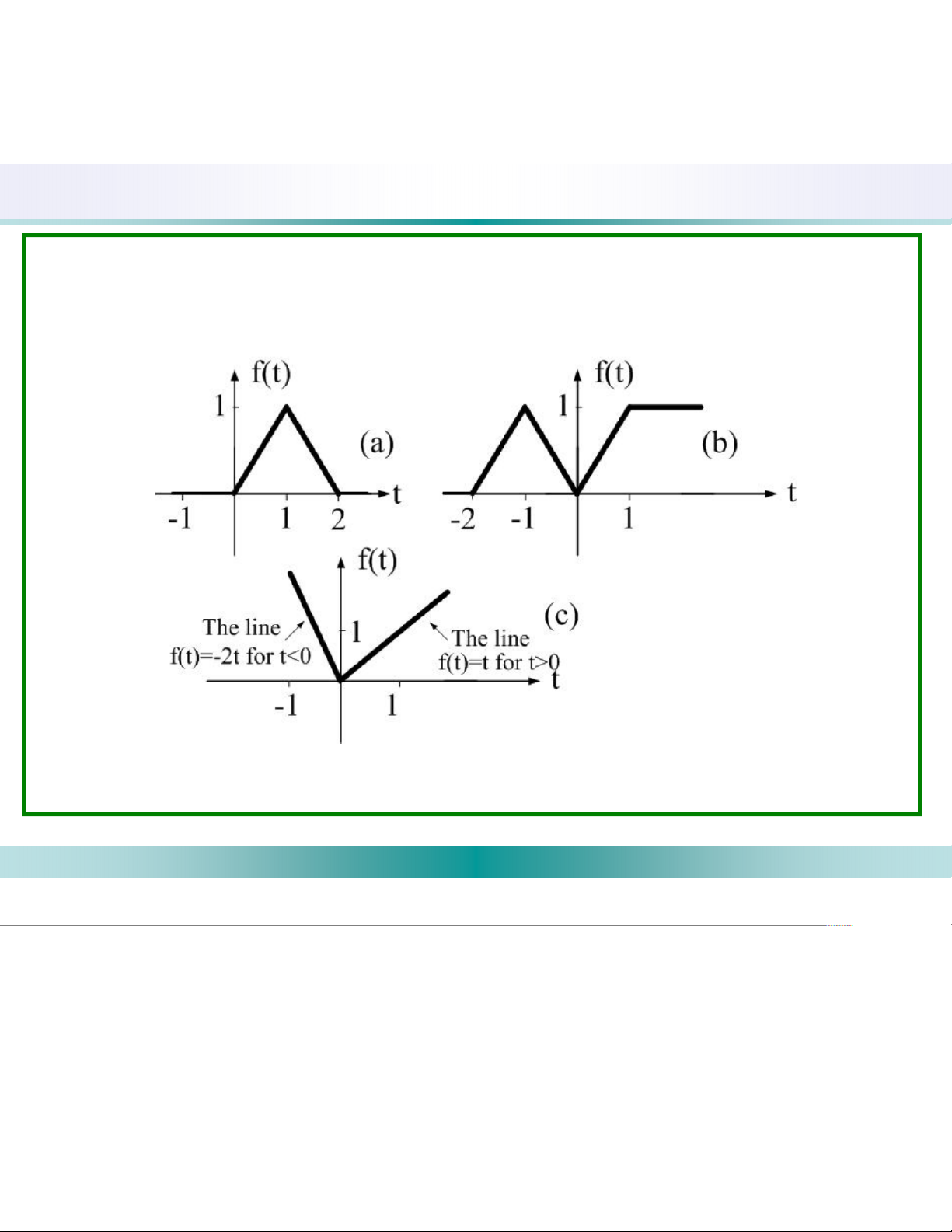 (d) y(t)=tf(t-2) (e) y(t)= f(τ)dτ (f) y(t)=f(t 2)+f( 2 t) -5