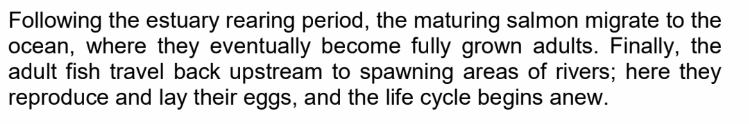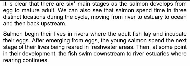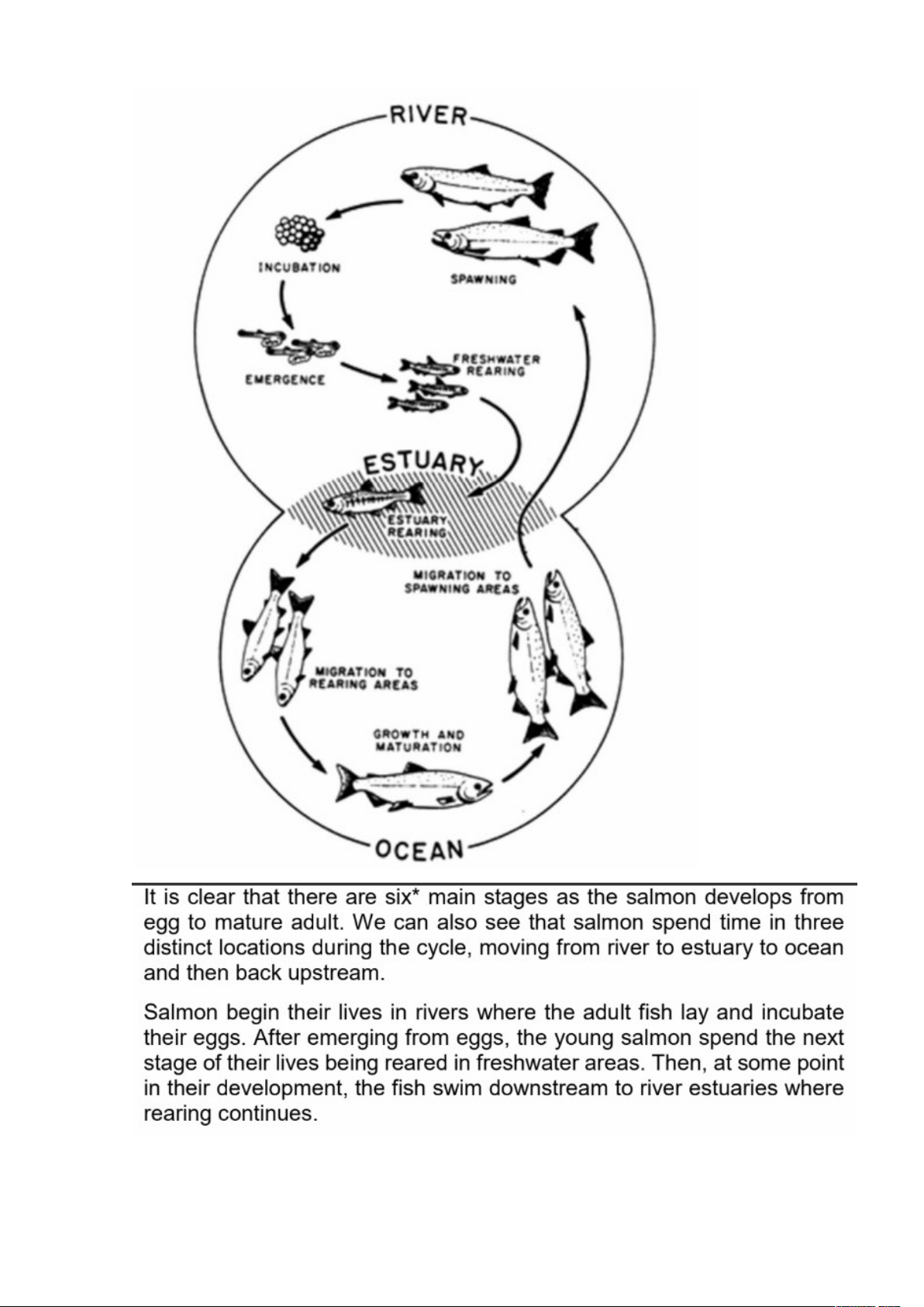 Task: the diagram below shows the life cycle of a salmon, from egg to adult fish.