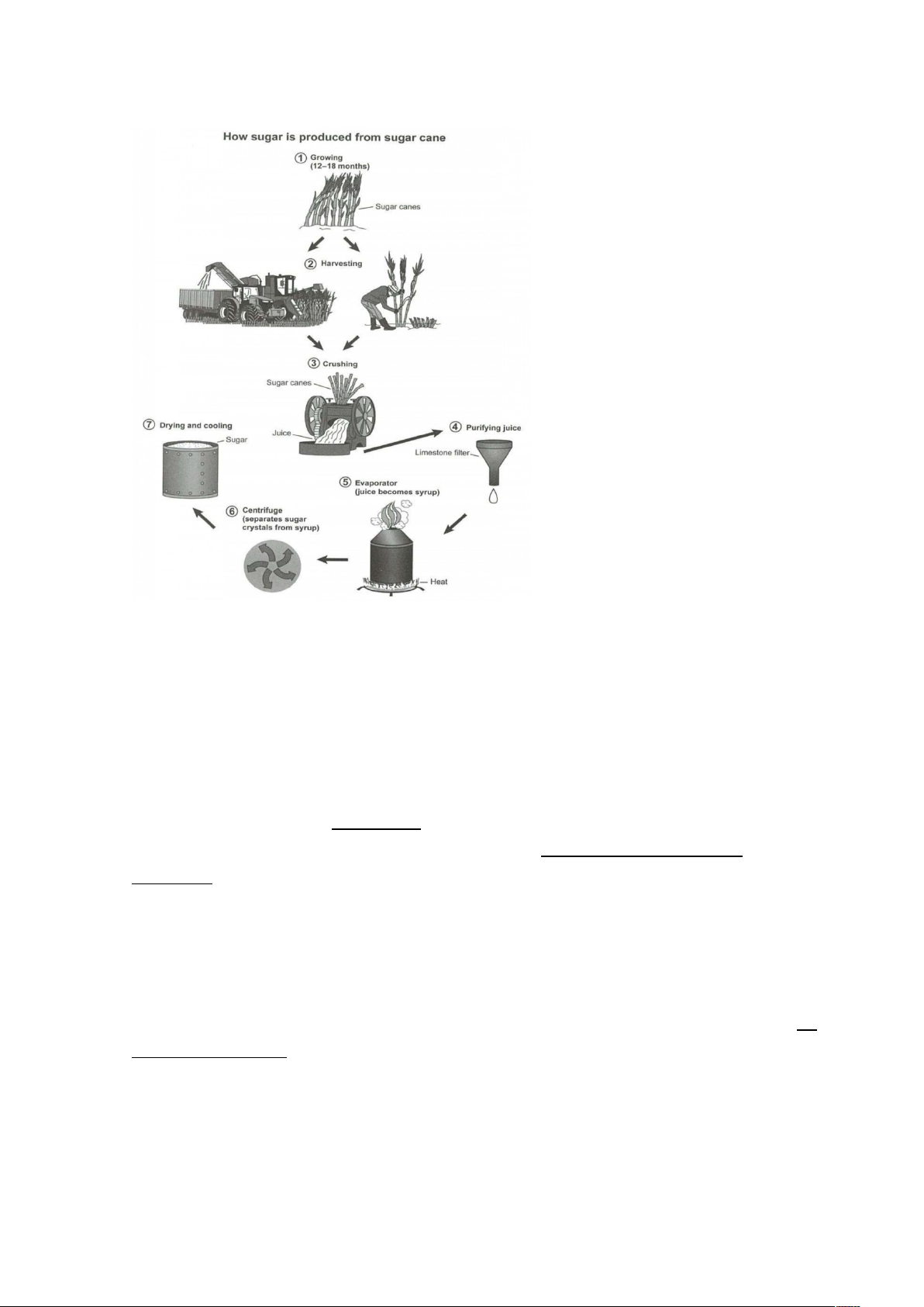 The diagram below shows the manufacturing process for making sugar from sugar cane.