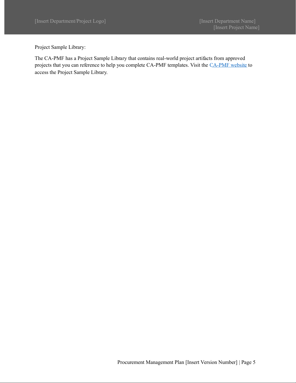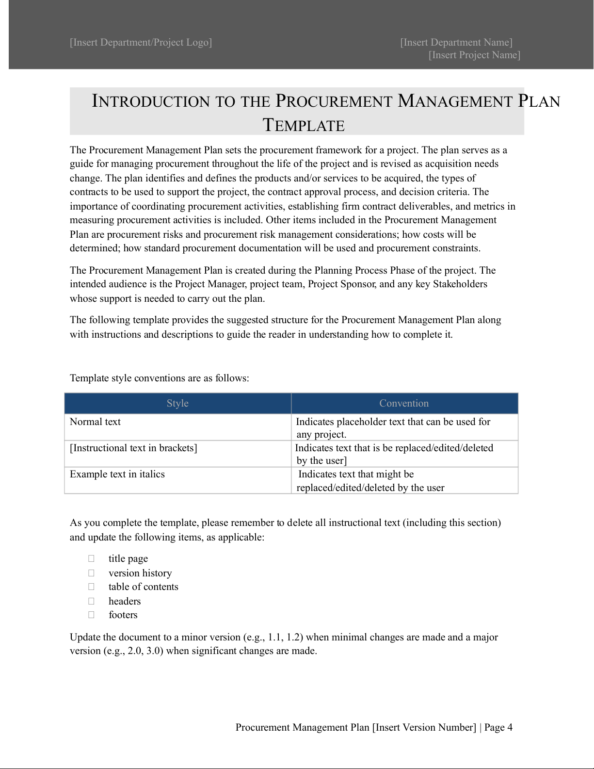 [Insert Department/Project Logo] [Insert Department Name] [Insert Project Name] INTRODUCTION TO THE PROCUREMENT MANAGEMENT PLAN TEMPLATE