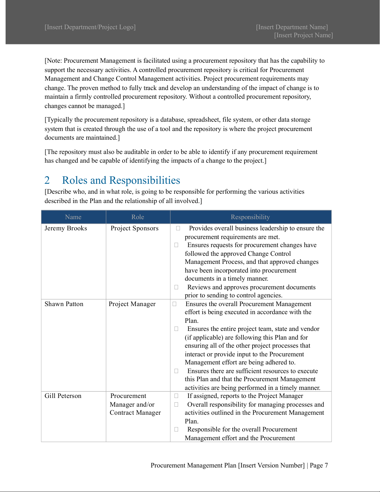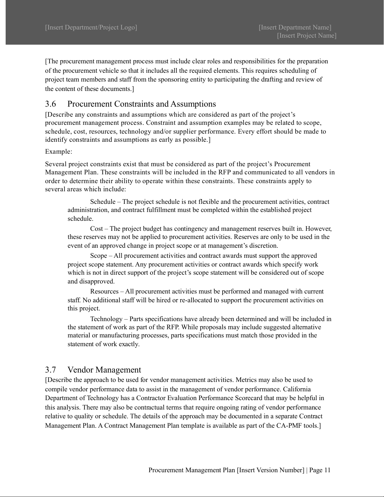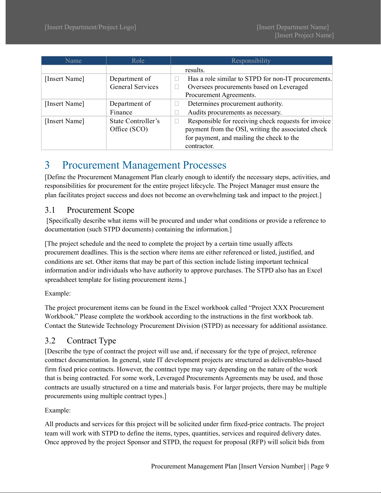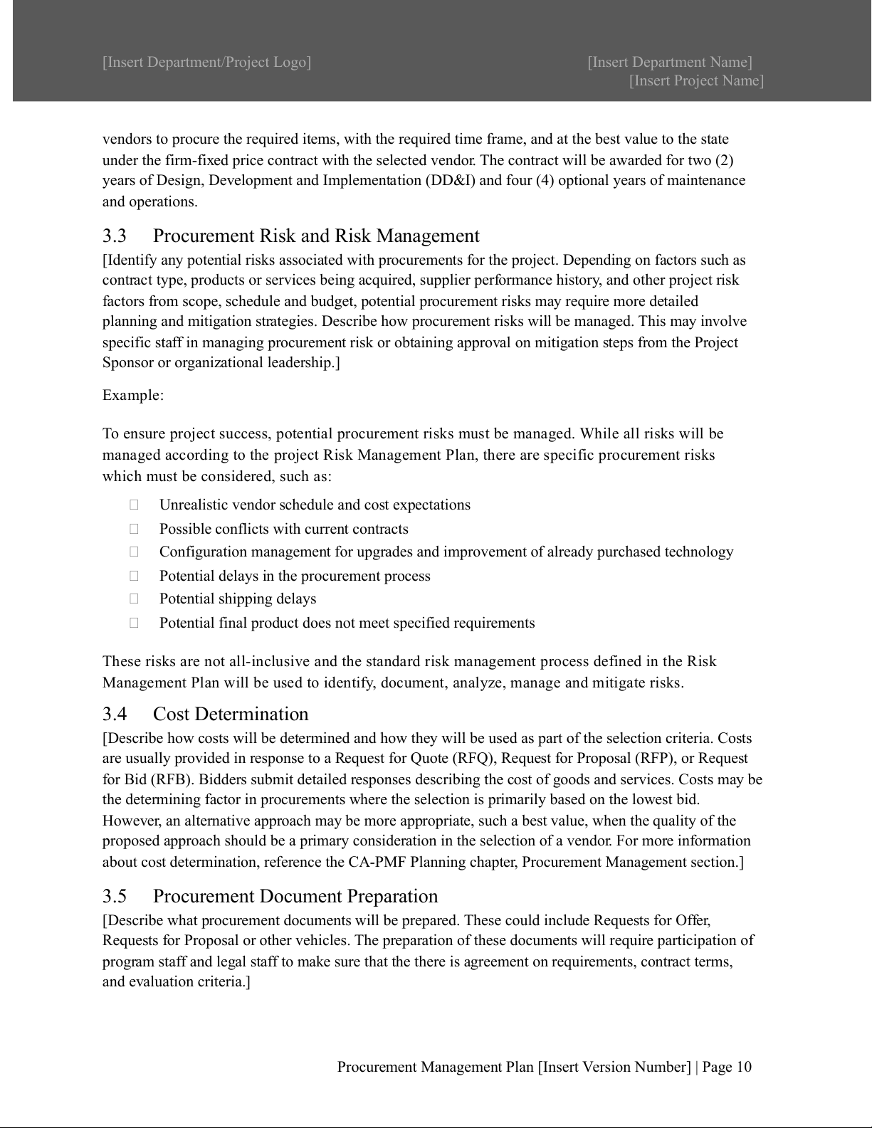 Procurement Management Plan [Insert Department Name] [Insert Project Name]