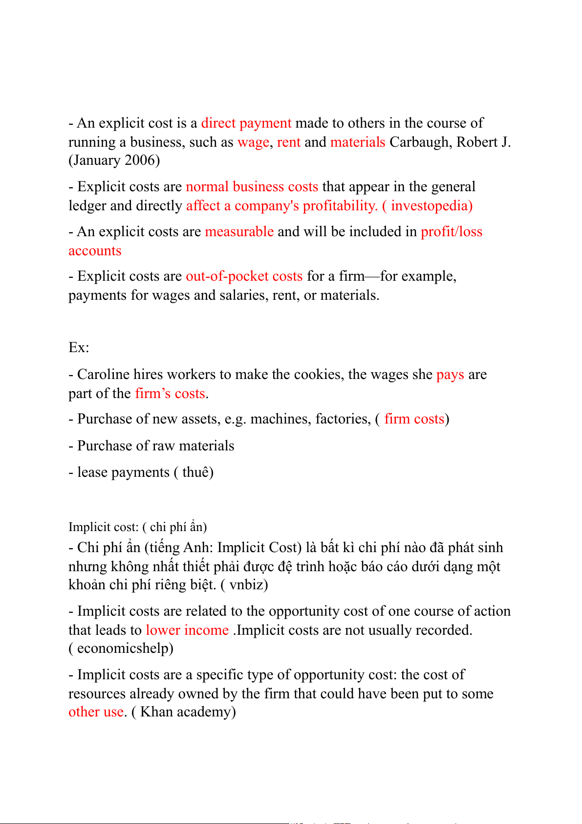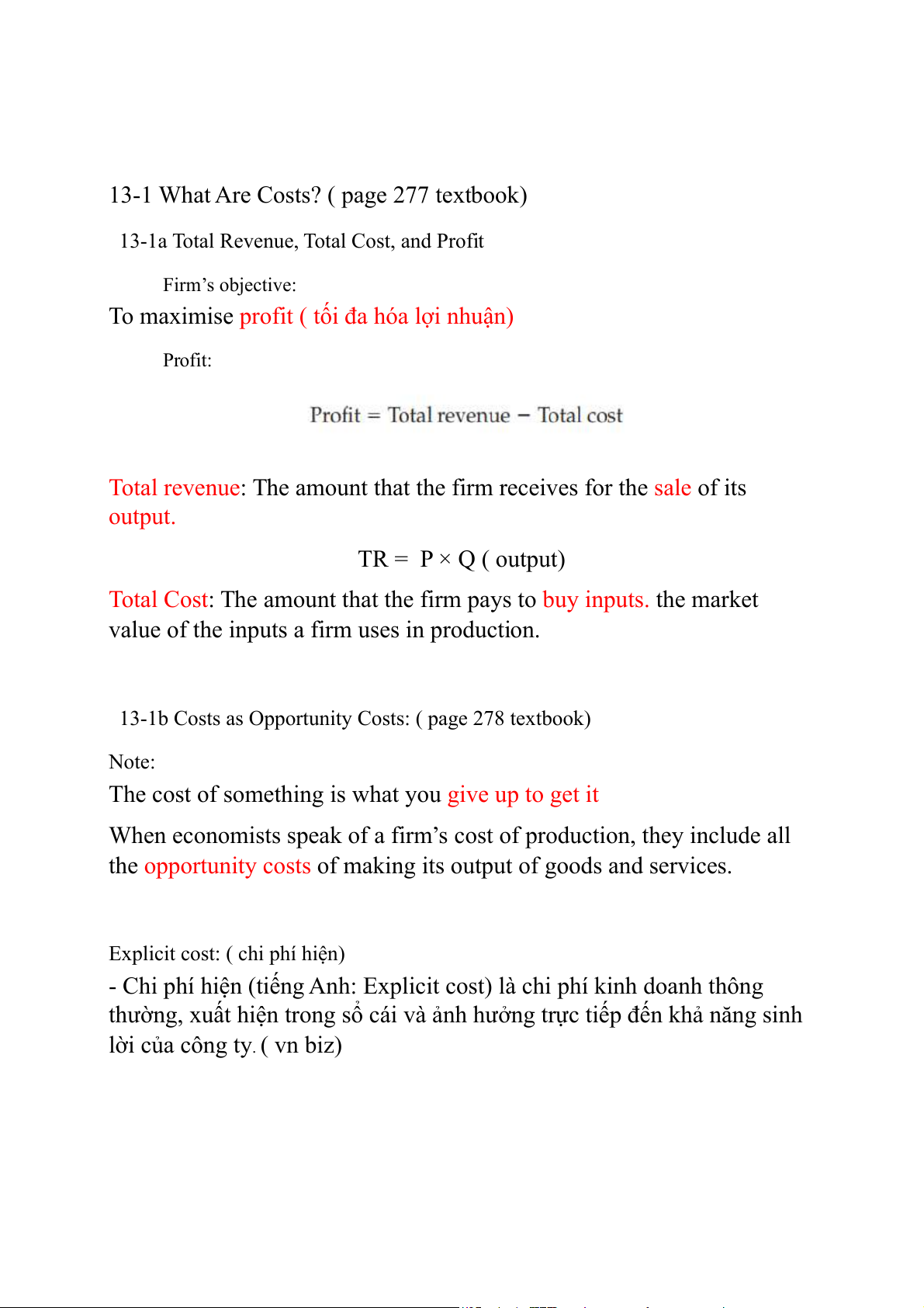 Explicit cost: ( chi phí hiện)