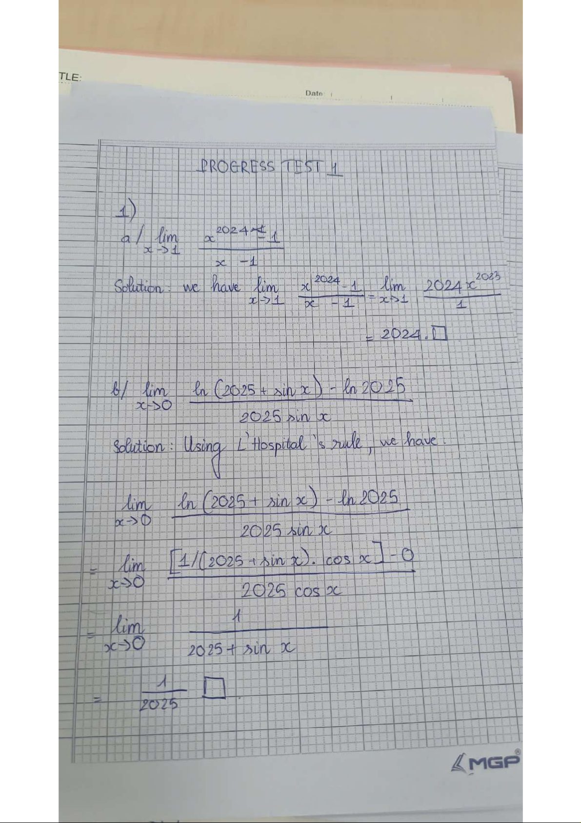 Progress Test 1: Limits and Continuity Solutions | Toán cao cấp 1 | Đại học Tôn Đức Thắng