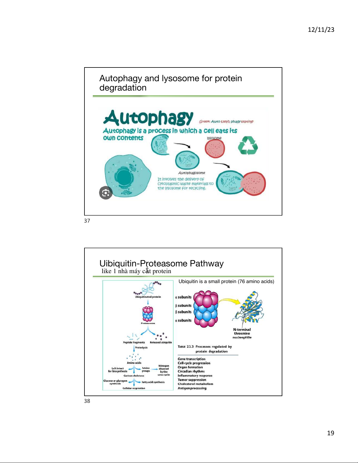 Autophagy and lysosome for protein degradation 37 Uibiquitin-Proteasome Pathway like 1 nhà máy c t ắ protein