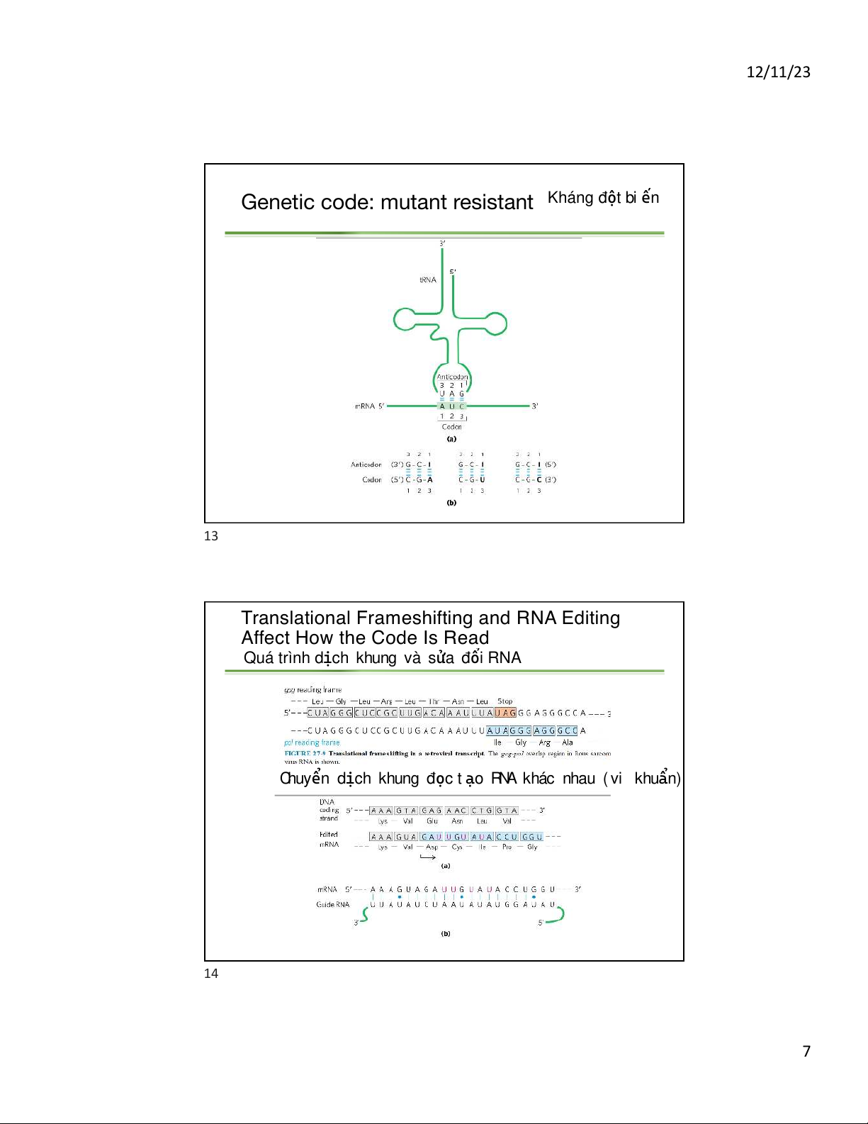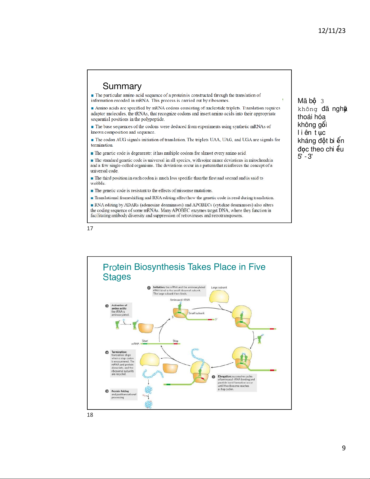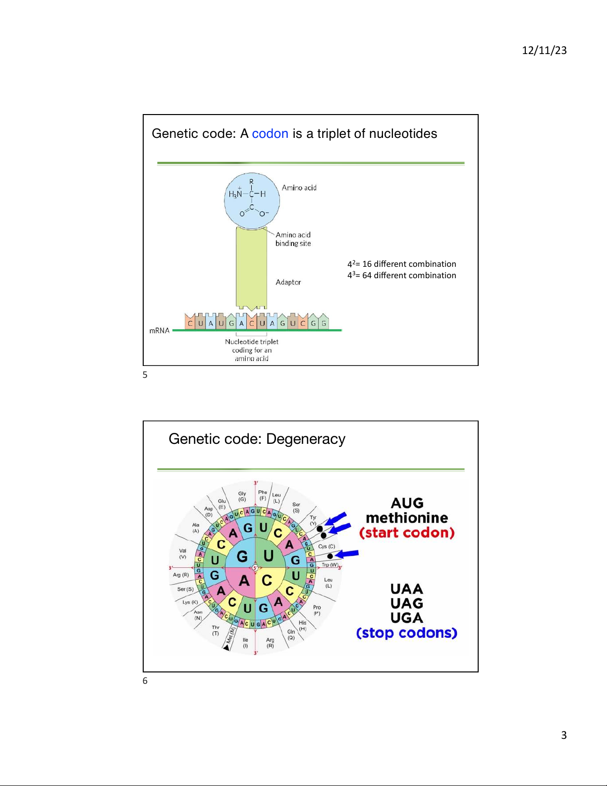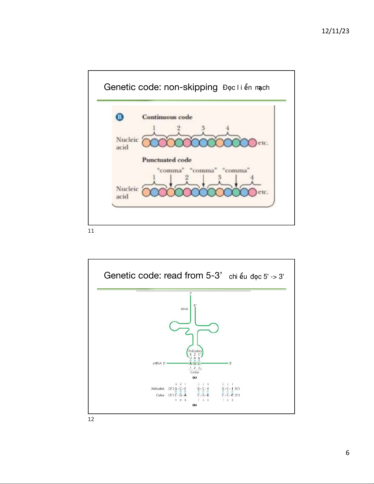 Genetic code: read from 5-3Õ chi u ề đọc 5' -> 3' 12 6 12/11/23
