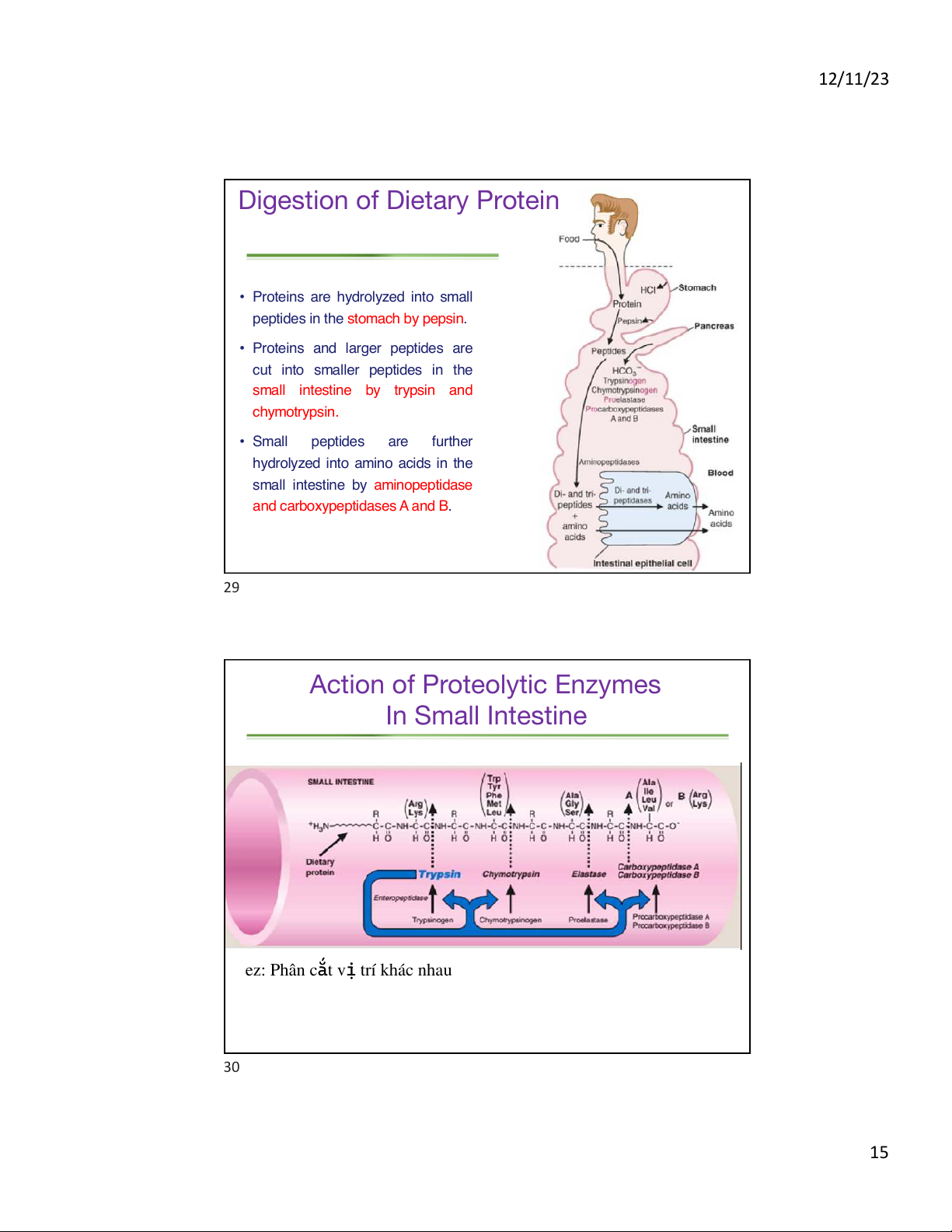 small intestine by aminopeptidase and carboxypeptidases A and B. 29 Action of Proteolytic Enzymes In Small Intestine ez: Phân cắt v t ị rí khác nhau 30 15 12/11/23