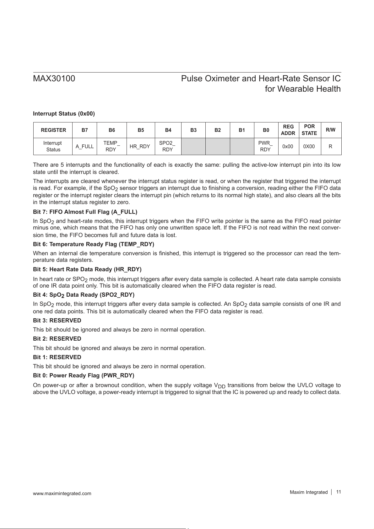 Active-Low Interrupt (Open-Drain) www.maximintegrated.com Maxim Integrated │ 8 MAX30100