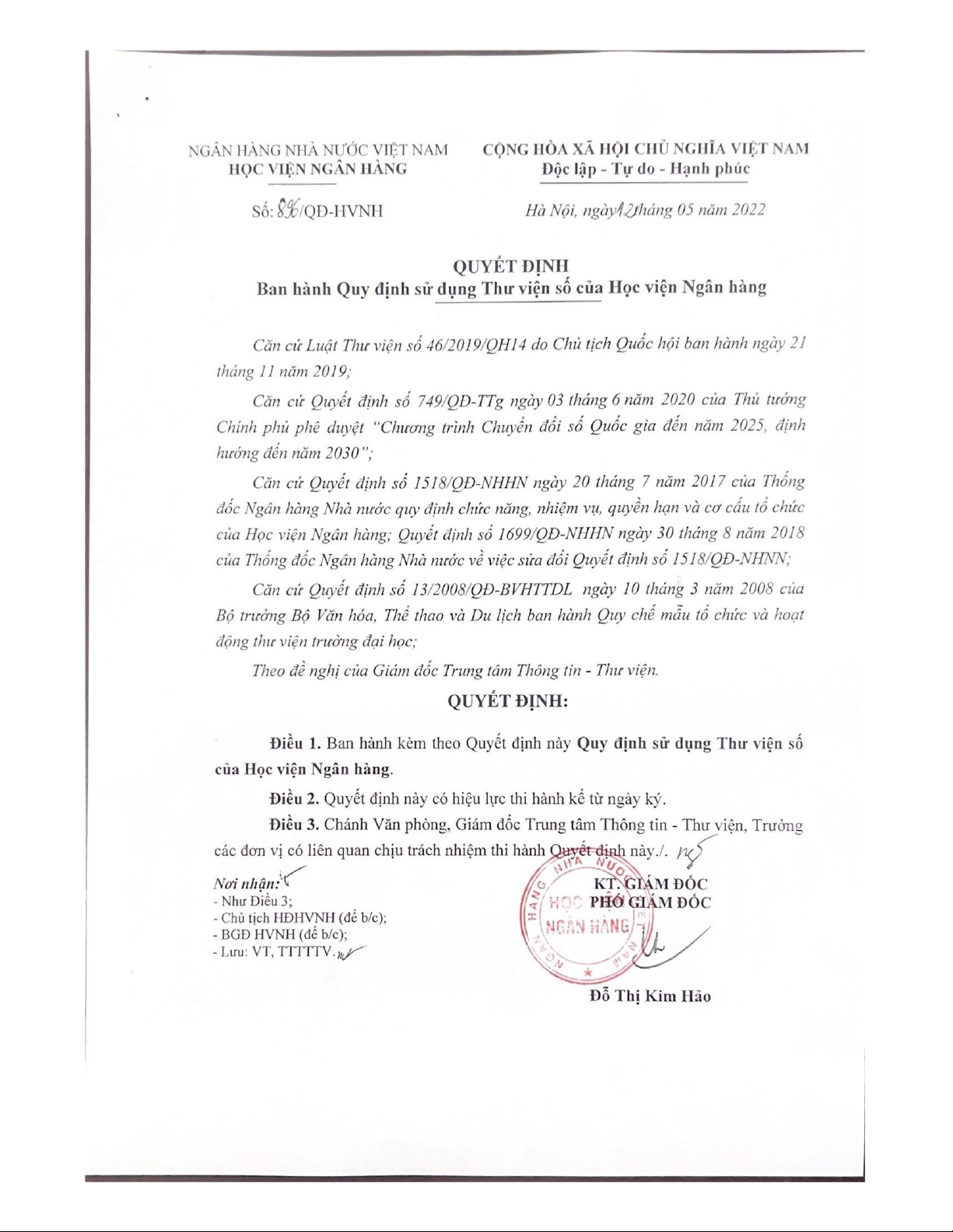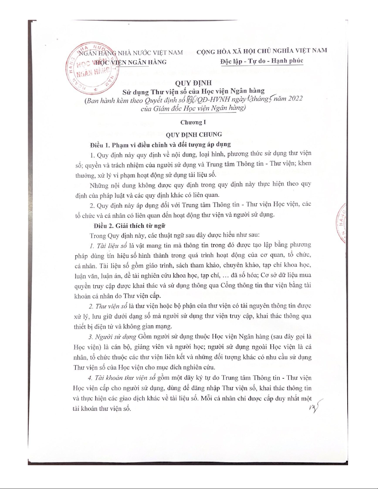 QD-HVNH-Quy định sử dụng Thư viện số của Học viện Ngân hàng