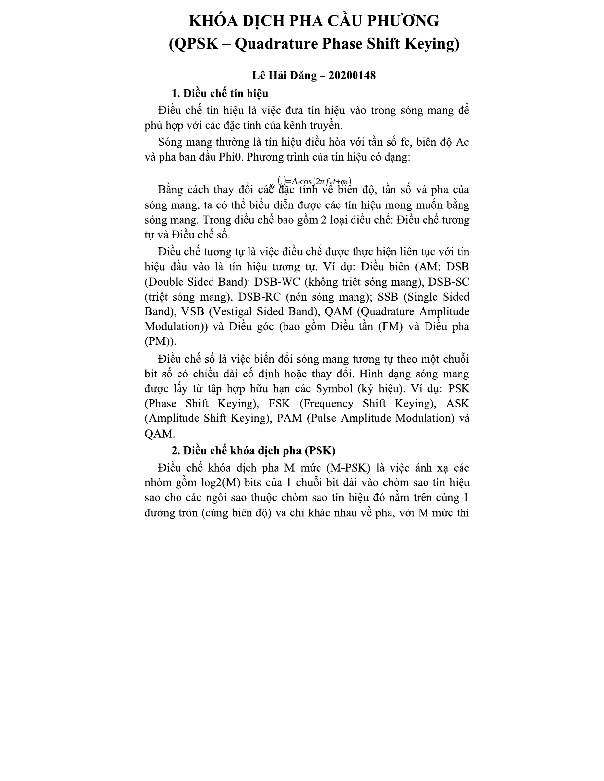 QPSK: Nghiên cứu về Điều Chế và Giải Điều Chế Khóa Dịch Pha
