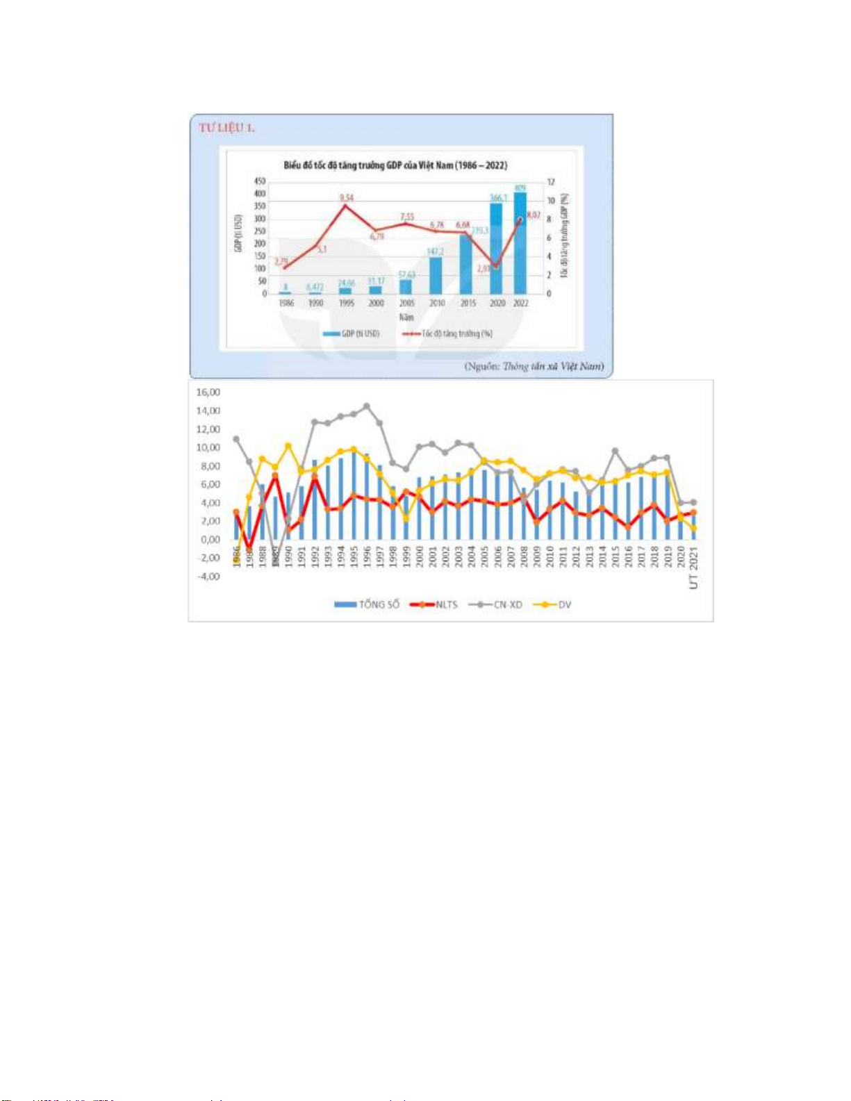 Tăng trưởng GDP Việt Nam theo ngành, 1986-2021 (%). (Ng uồn: Tổng cục Thống kê)