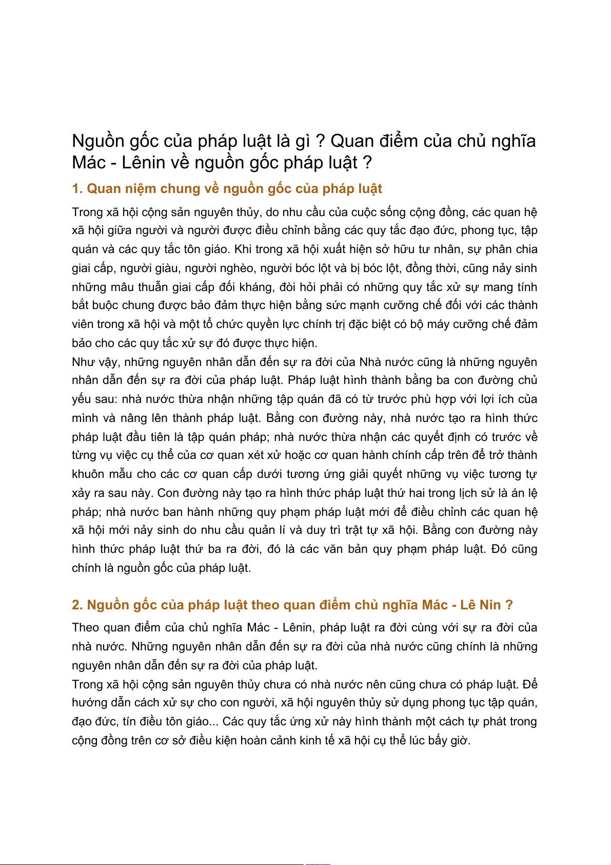 2. Nguồn gốc của pháp luật theo quan điểm chủ nghĩa Mác - Lê Nin ?