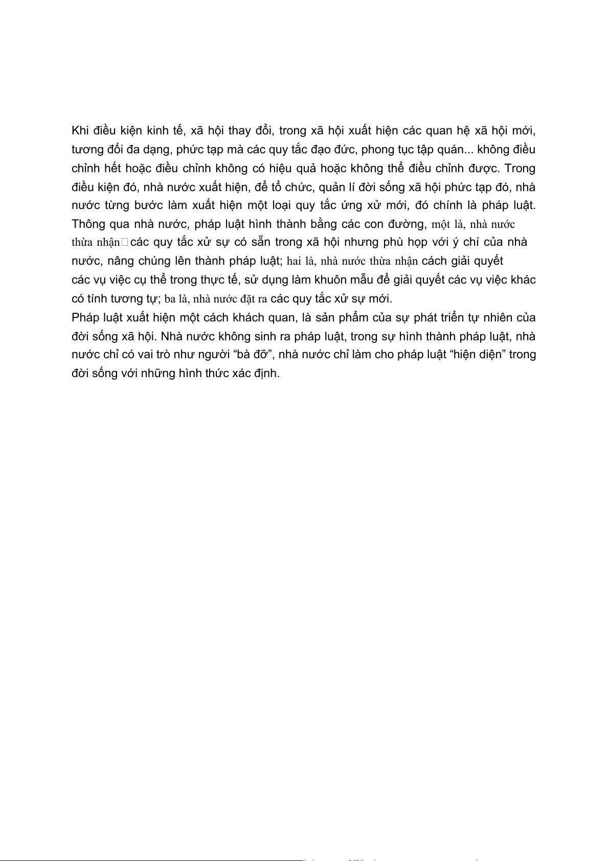 đời sống xã hội. Nhà nước không sinh ra pháp luật, trong sự hình thành pháp luật, nhà