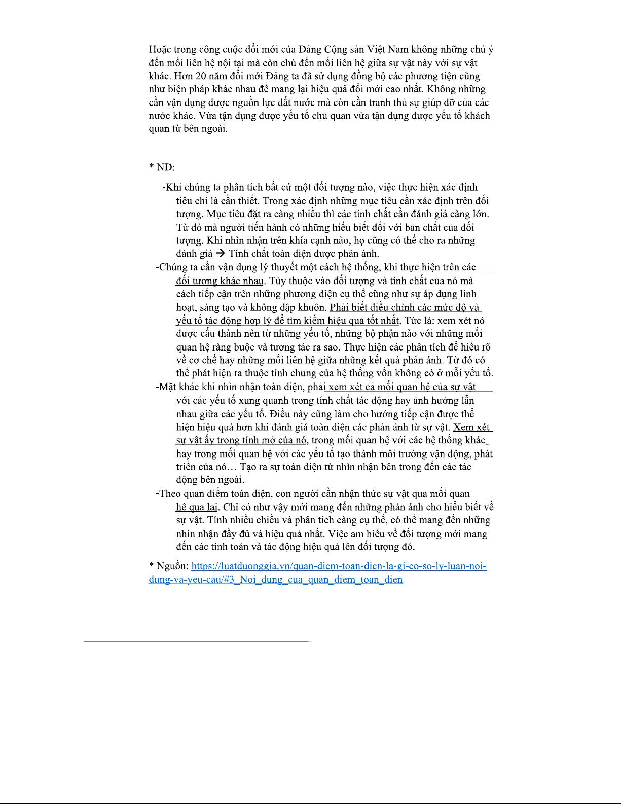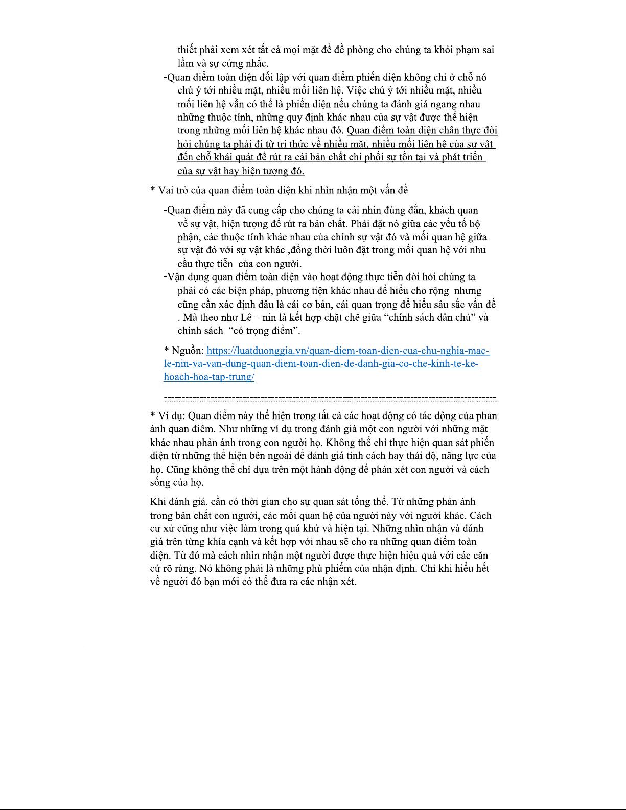QUAN ĐIỂM TOÀN DIỆN VÀ PHÁT TRIỂN TRONG TRIẾT HỌC MÁC - LÊNIN