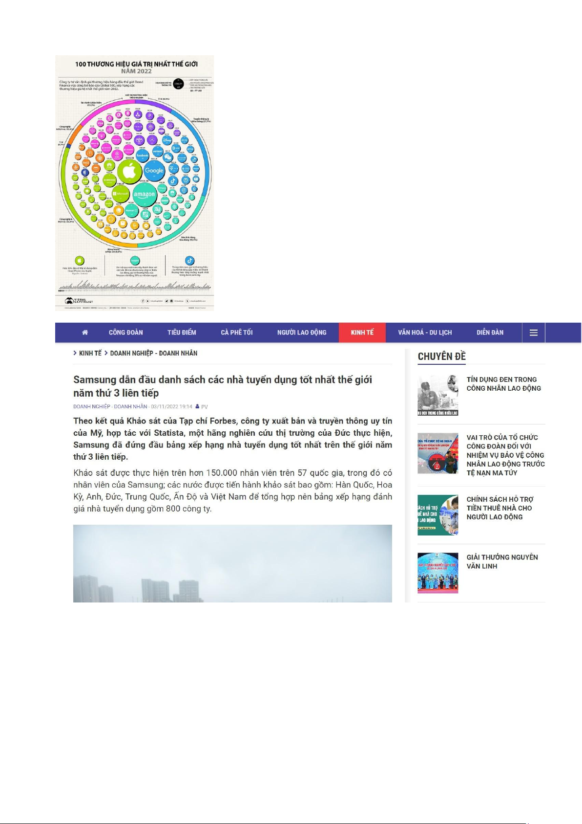 thế giới năm thứ ba liên tiếp theo “Danh sách 100 Thương hiệu toàn cầu giá trị nhất 2022” do Interbrand công bố. lOMoAR cPSD| 61096931