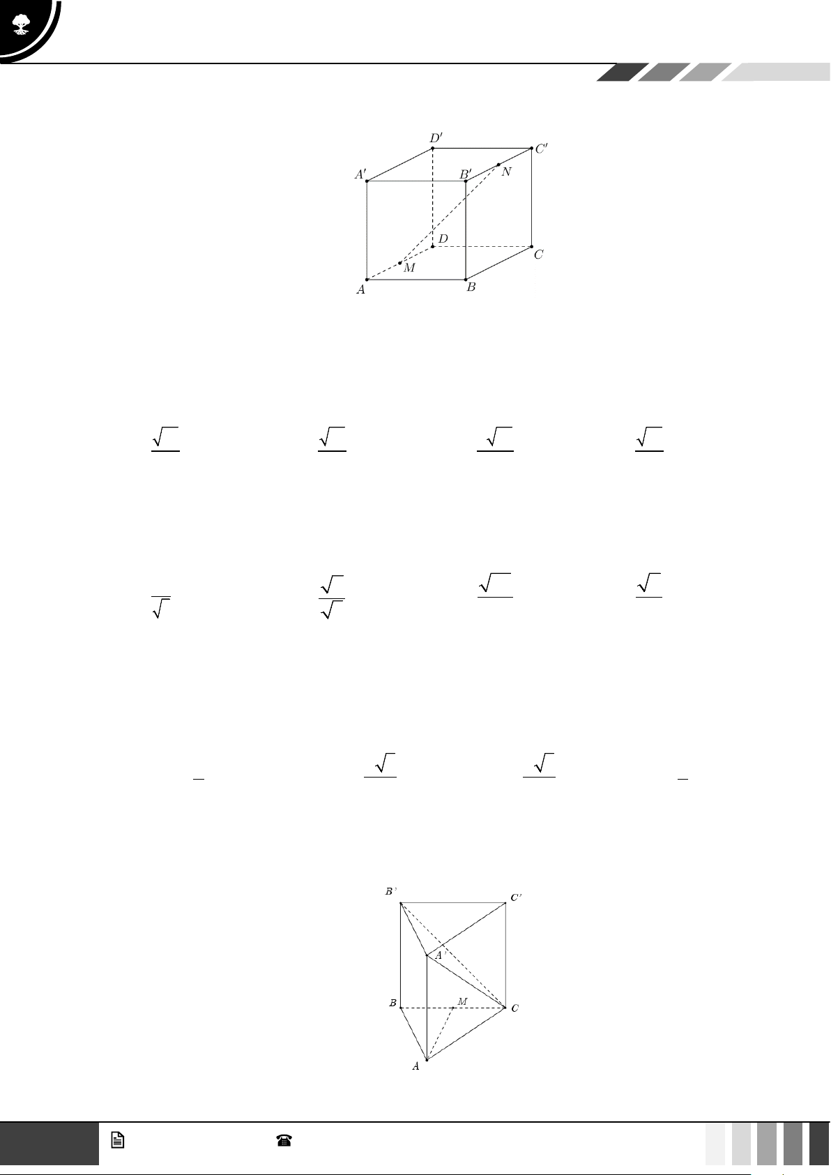 Câu 7: Cho hình lập phương ABC . D A′B C ′ D