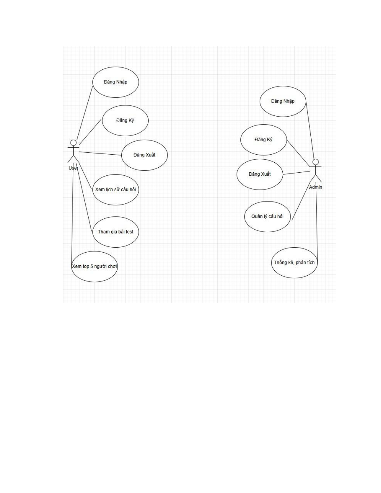 Admin: Quản lí câu hỏi, thống kê, phân tích và gồm những chức năng của User.