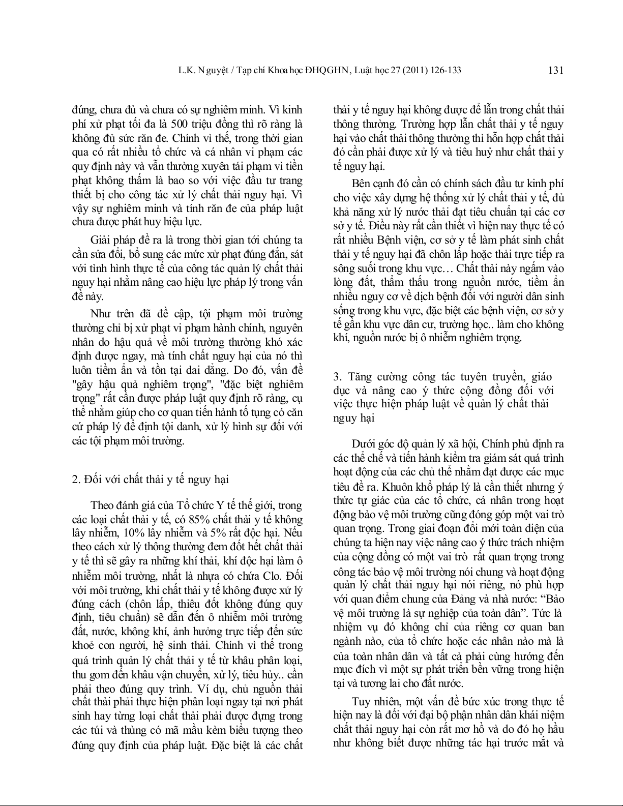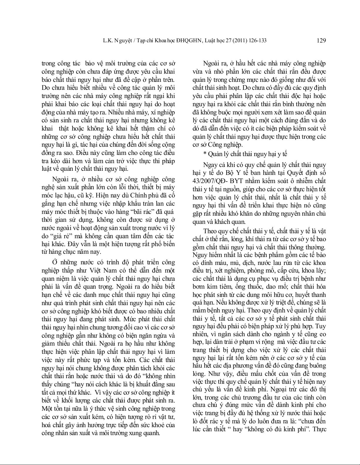Vấn đề thực thi pháp luật về quản lý chất thải nguy hại ở Việt Nam hiện nay Lê Kim Nguyệt**