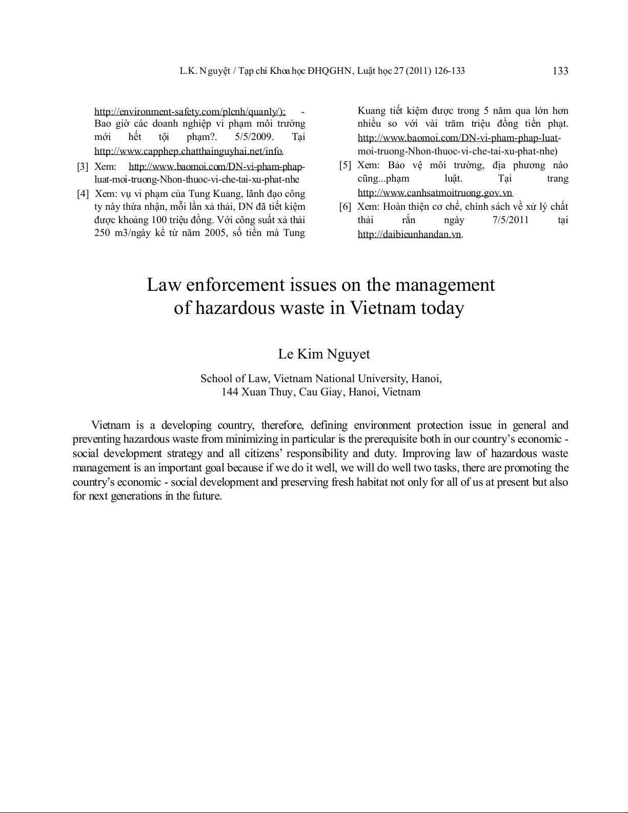 L.K. Nguyệt / Tạp chí Khoa học ĐHQGHN, Luật học 27 (2011) 126-133 133