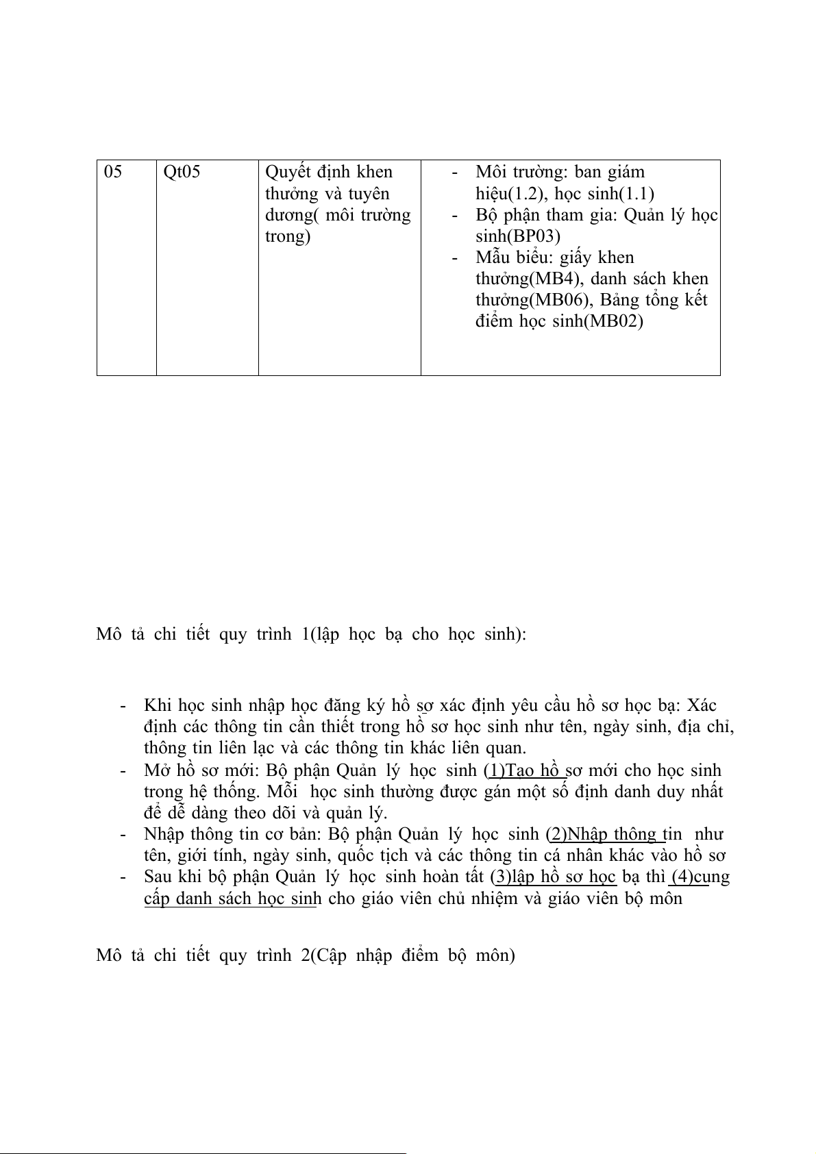 1.3. Quy trình xử lý stt Mã quy Tên quy trình Mô tả trình 01 Qt01 Tạo lập hồ sơ học