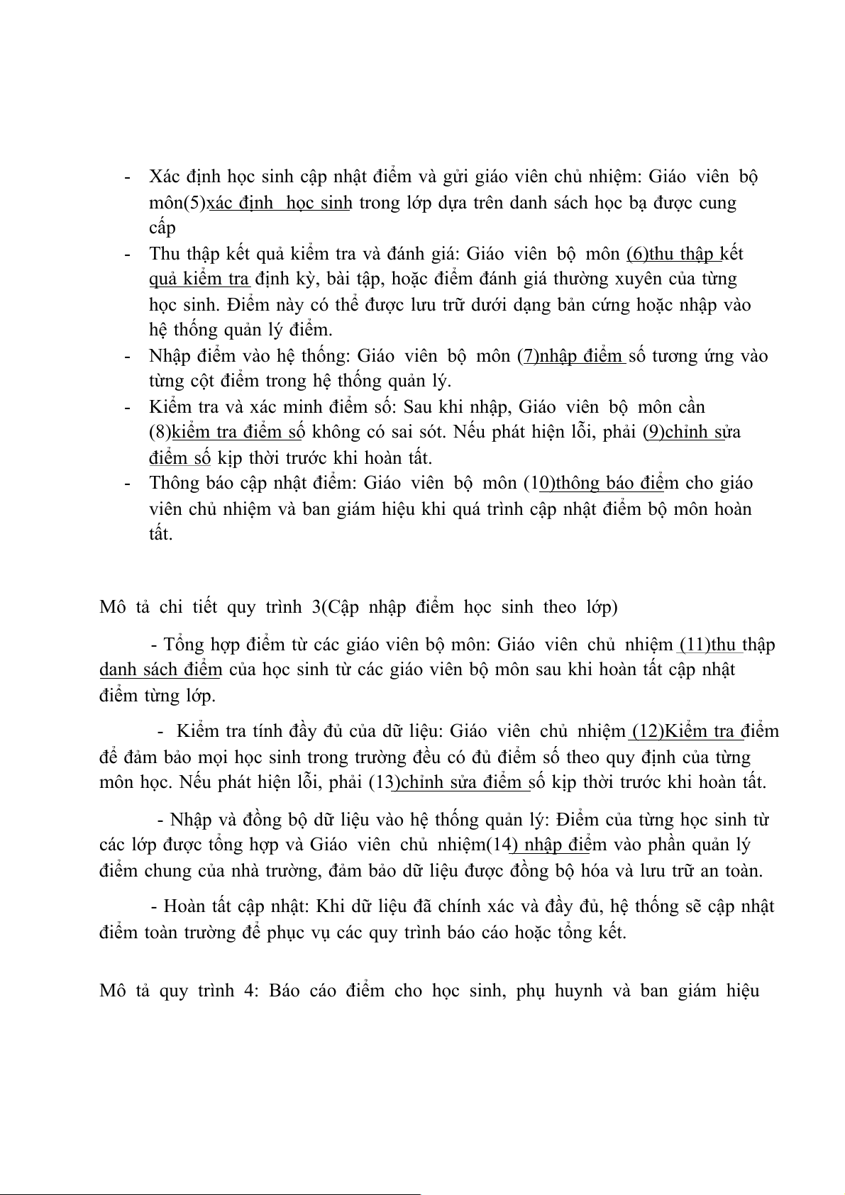 Mô tả chi tiết quy trình 3(Cập nhập điểm học sinh theo lớp)