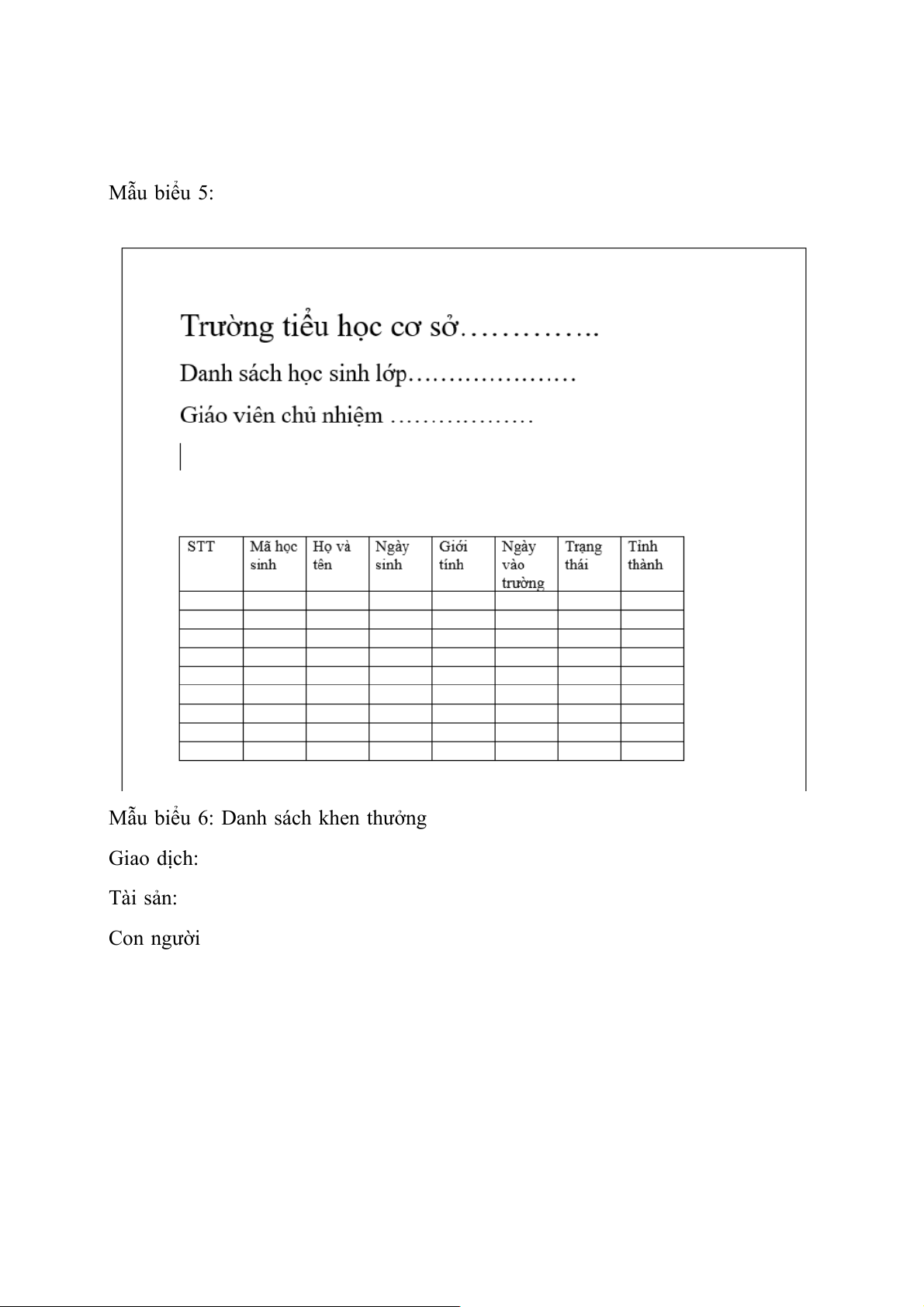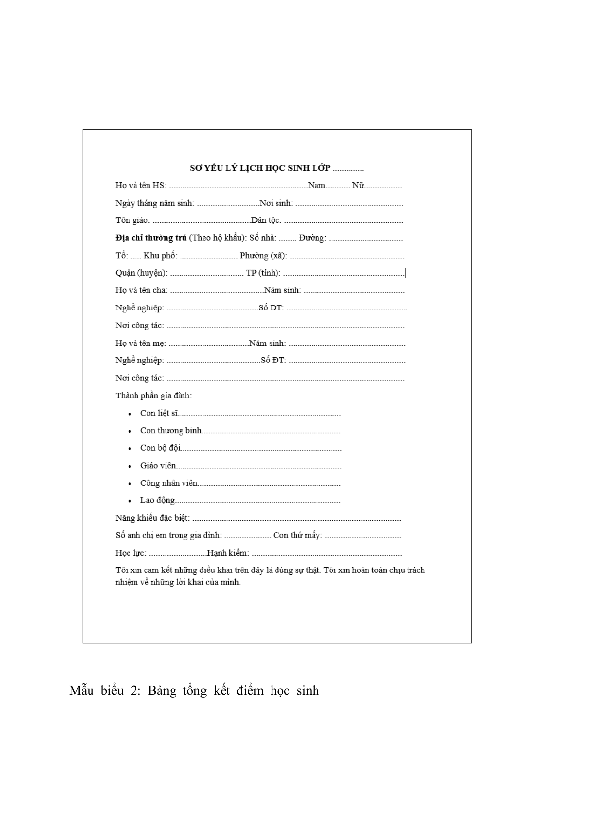 - Mẫu biểu: bảng tổng kết điểm học sinh(MB2) , danh sách