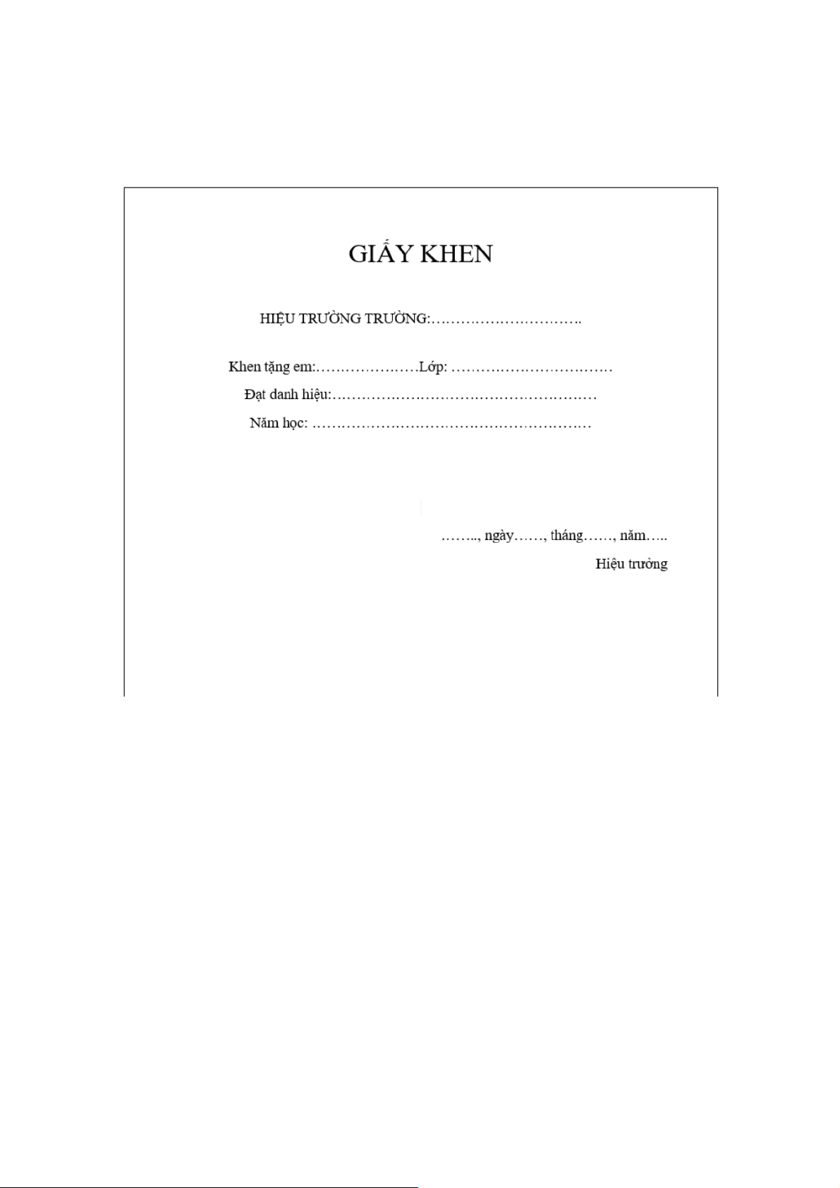 Mẫu biểu 4: Giấy khen thưởng Mẫu biểu 5: