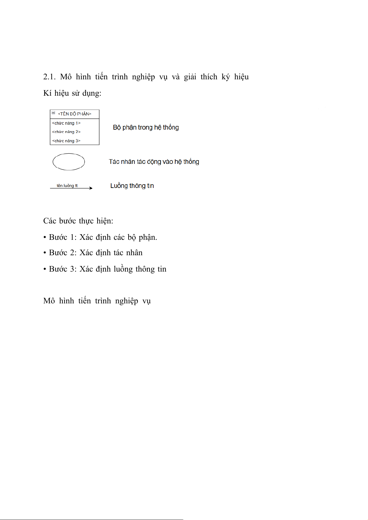 2.1. Mô hình tiến trình nghiệp vụ và giải thích ký hiệu Kí hiệu sử dụng: Các bước thực hiện: