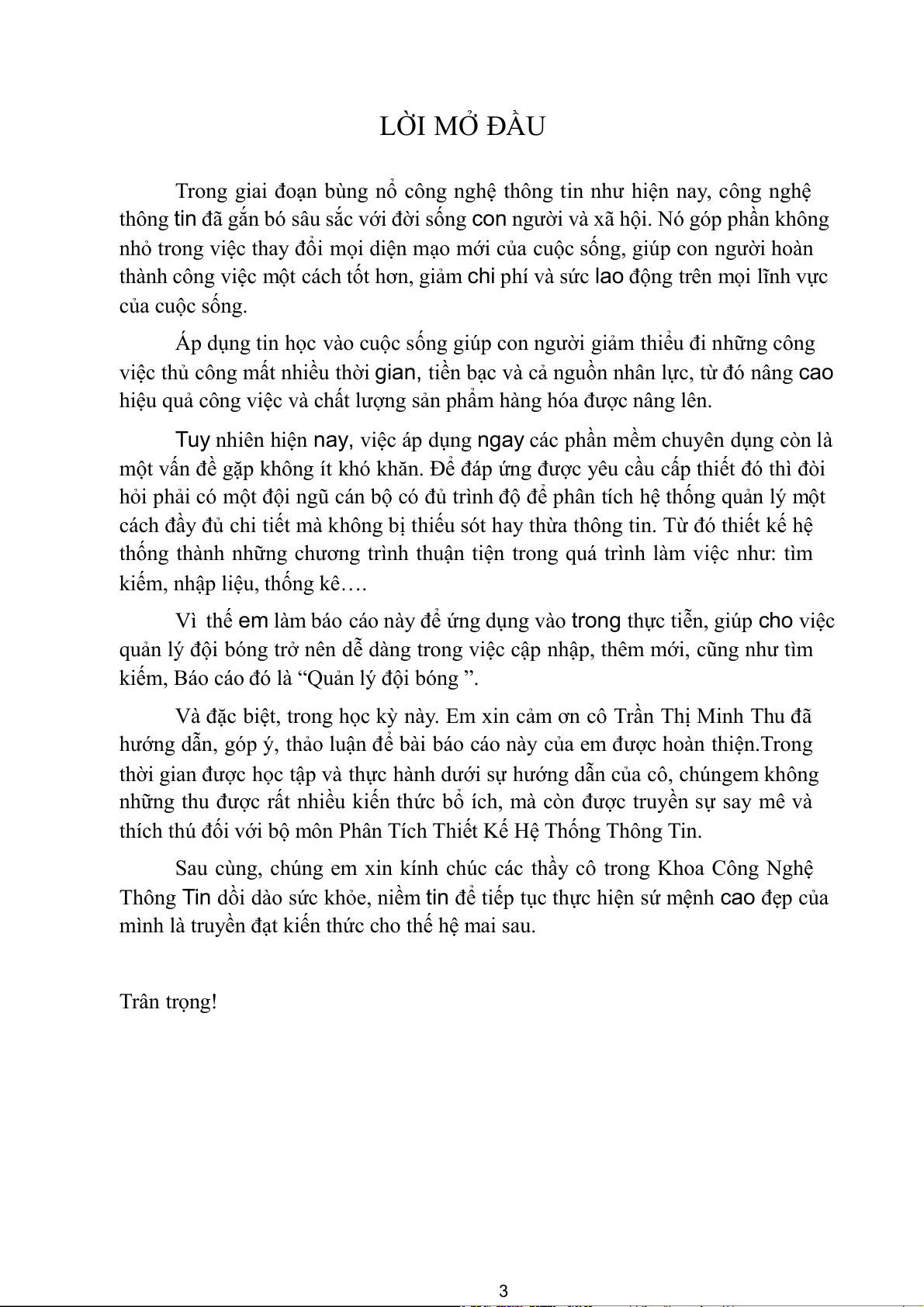 động của đội. Giúp cho công việc quản lý trở nên dễ dàng, tiện dụng và chính xác hơn.