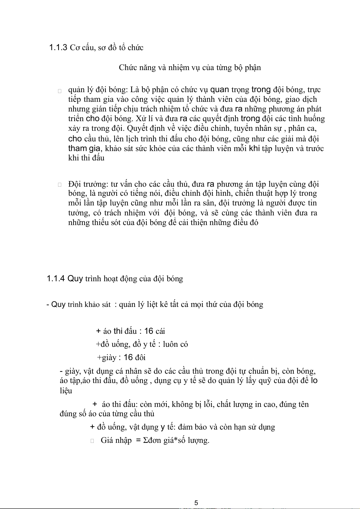 1.1.4 Quy trình hoạt động của đội bóng ..................................................................................... 5 1.1.5. Ư