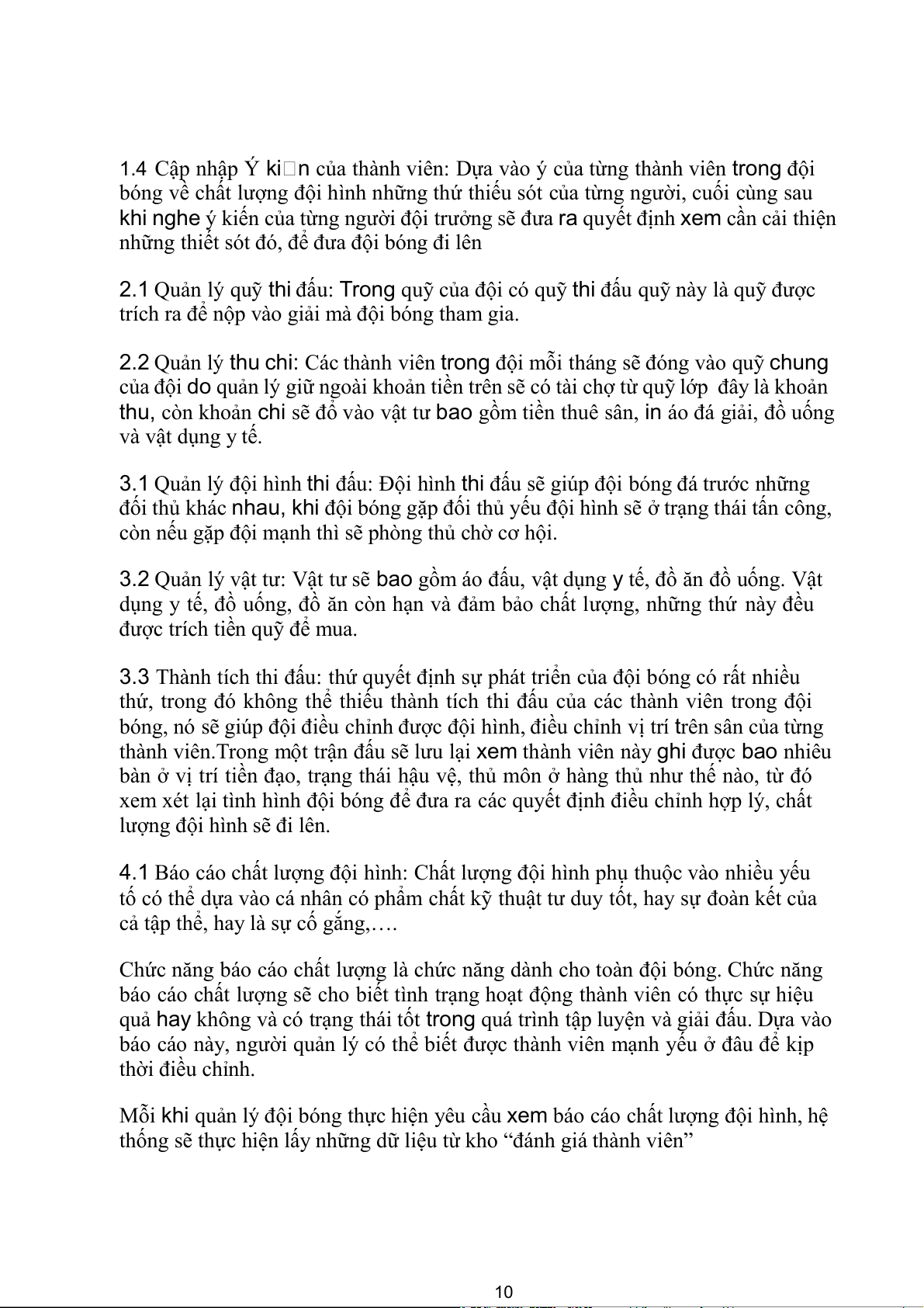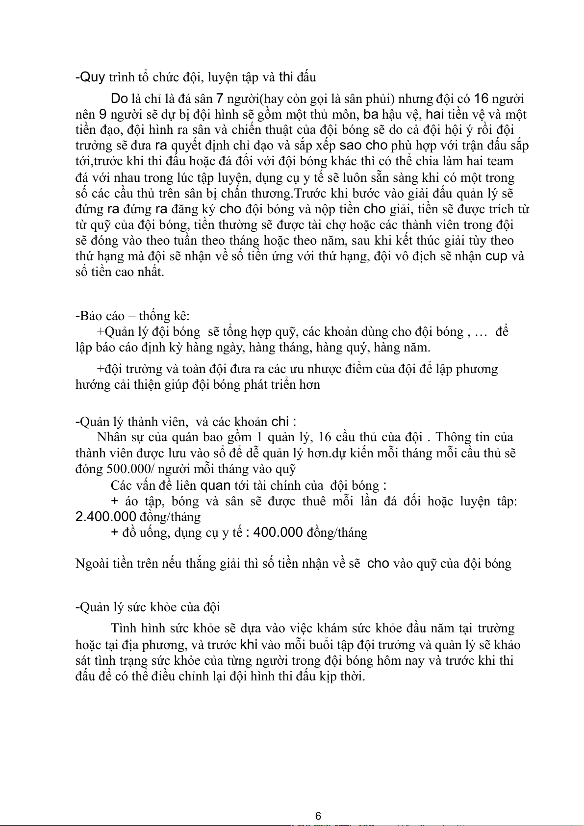 - Qu ytrình khảo sát : quản lý liệt kê tất cả mọi thứ của đội bóng + áo thi đấu : 16 cái