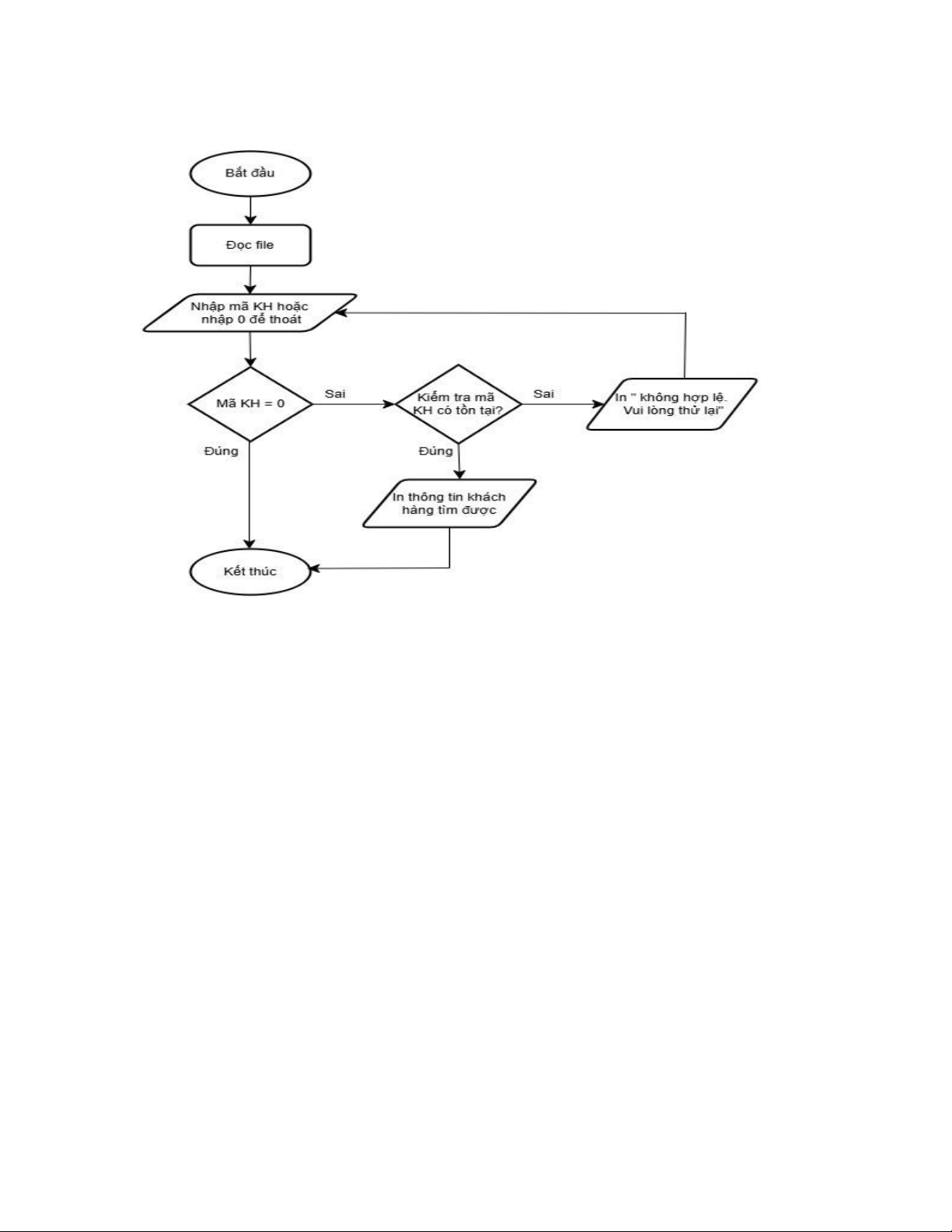 Bước 2: Nhập mã khách hàng cần tìm kiếm (hoặc nhập 0 để thoát) Bước 3: Kiểm tra mã KH=0?